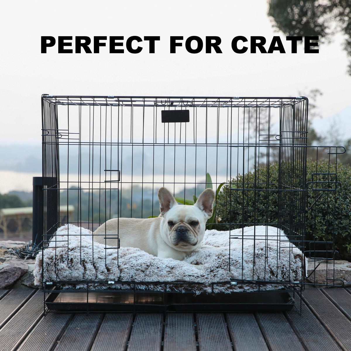 Bedfolks Plush Waterproof Dog Crate Bed, Faux Fur Kennel Pad, 35''X23'', Brown
