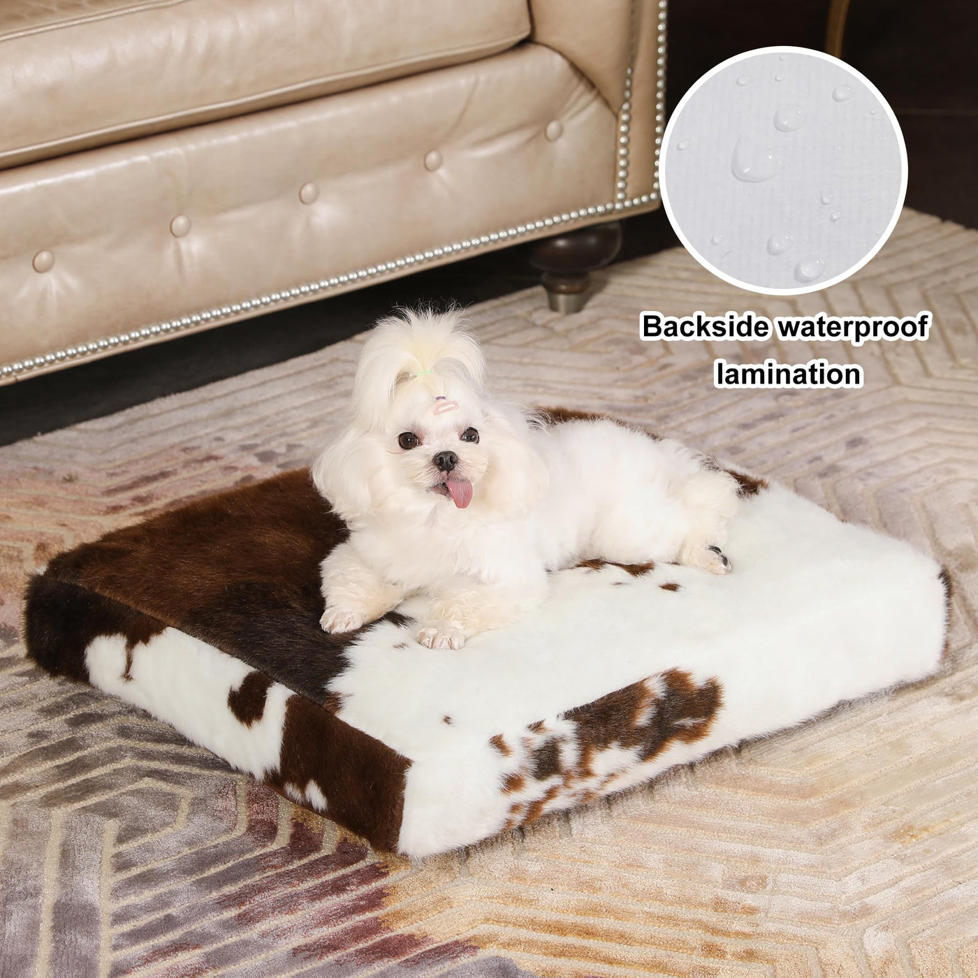 Bedfolks Waterproof Crate Bed, Plush Dog & Cat Bed With Removable Washable Cover, Faux Fur Kennel Pad, 17''X12'', Cow Print