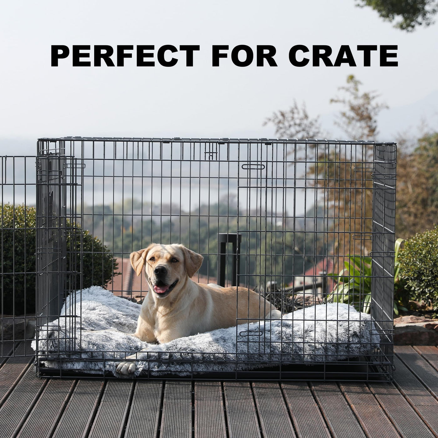 Bedfolks Waterproof Crate Bed, Plush Dog Kennel Pad With Removable Washable Cover, Faux Fur, Fluffy, 41''X27'', Dark Grey