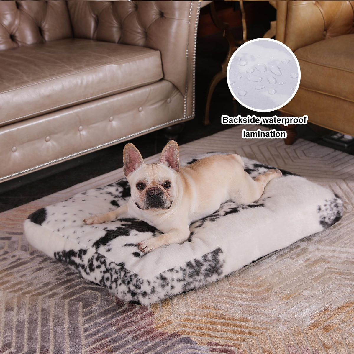 Bedfolks Waterproof Crate Bed, Plush With Removable Washable Cover, Faux Fur Pad For Large Dogs, Fluffy Kennel 35'X23', Black-