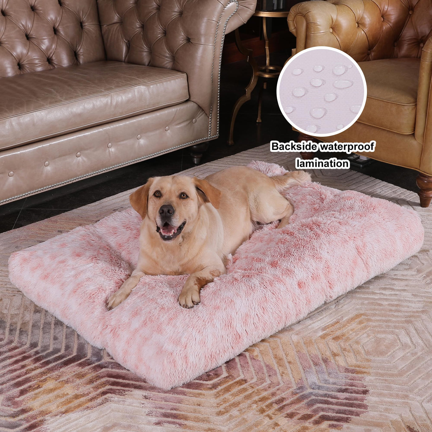 Bedfolks Waterproof Dog Crate Bed With Removable Washable Cover, Plush Faux Fur Pad, Extra Large, Fluffy Kennel Bed, 41''X27'',