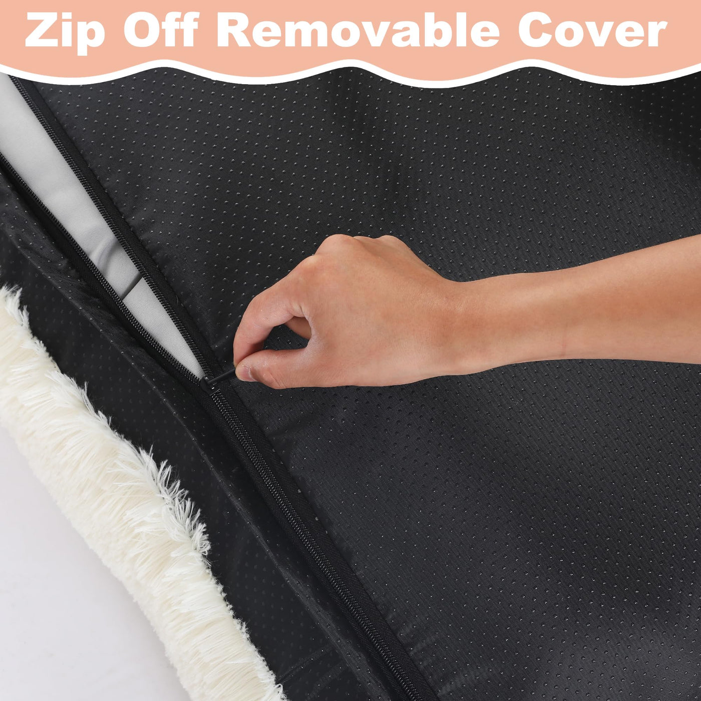 Bedfolks Waterproof Xxl Dog Crate Bed, Plush Pad With Removable Cover, Faux Fur, Fluffy Washable Kennel Bed, 47''X29'', Cream