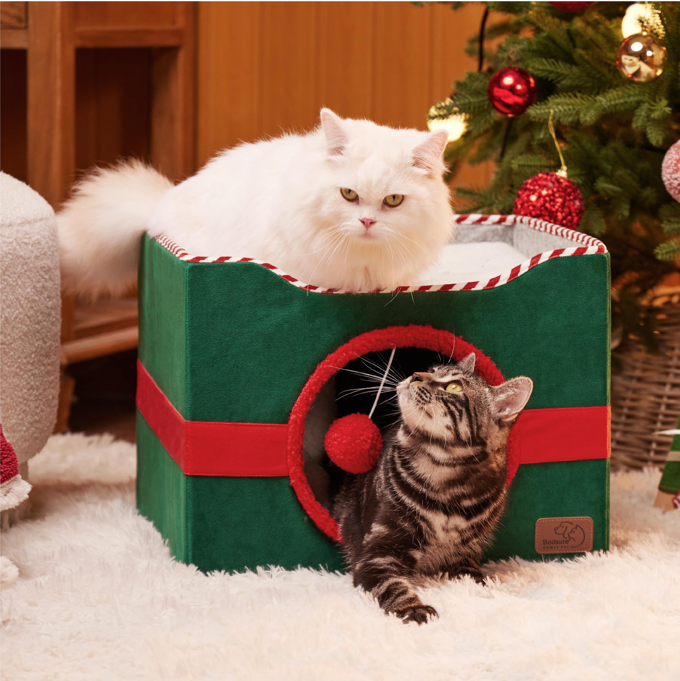 Q: Can multiple cats use this cat house?A: Yes, the spacious design of the Bedsure Cat Bed makes it suitable for multi-cat households, allowing cats to lounge and play comfortably.