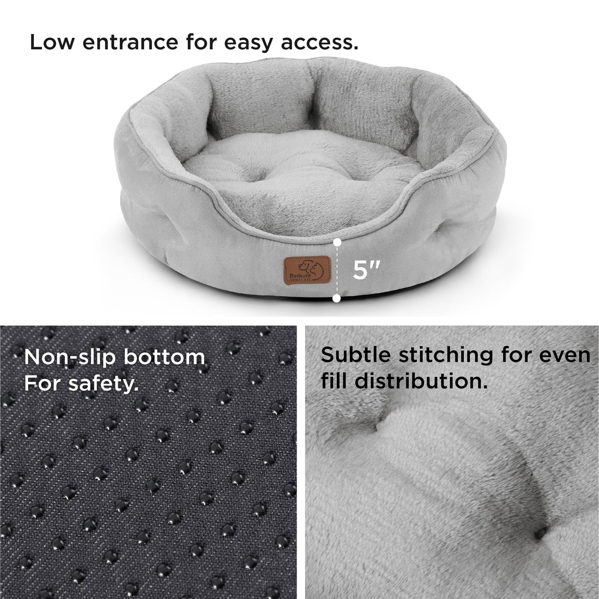 Q: Is the bottom of the Bedsure Dog Bed slip-resistant?A: Yes, the Bedsure Dog Bed has a non-skid bottom that adds stability and prevents slips, providing a safe resting environment for your pet.