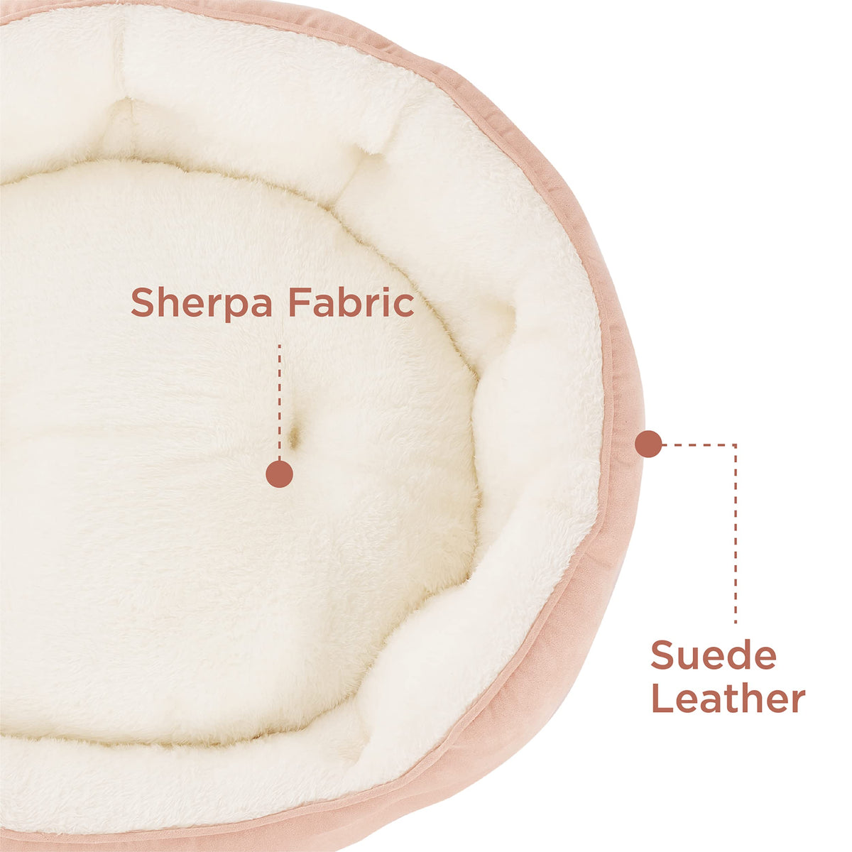 Bedsure Small Dog Bed for Small Dogs Washable - Round Cat Beds for Indoor Cats Round Pet Bed for Puppy and Kitten with Slip-Resistant Bottom 25 Inches Peach Pink