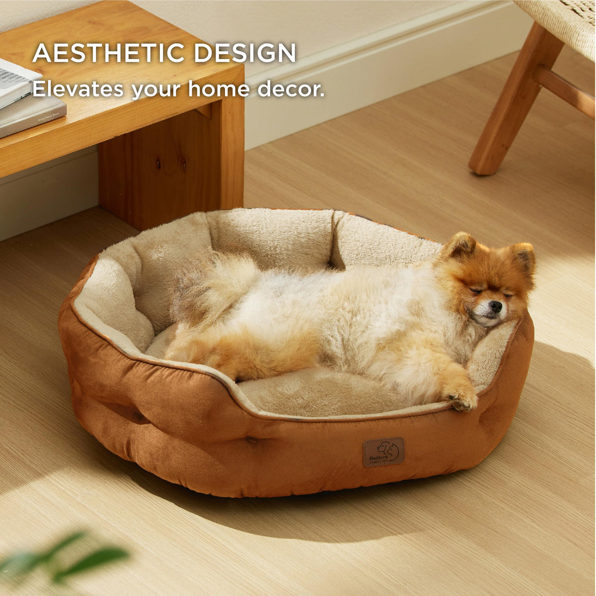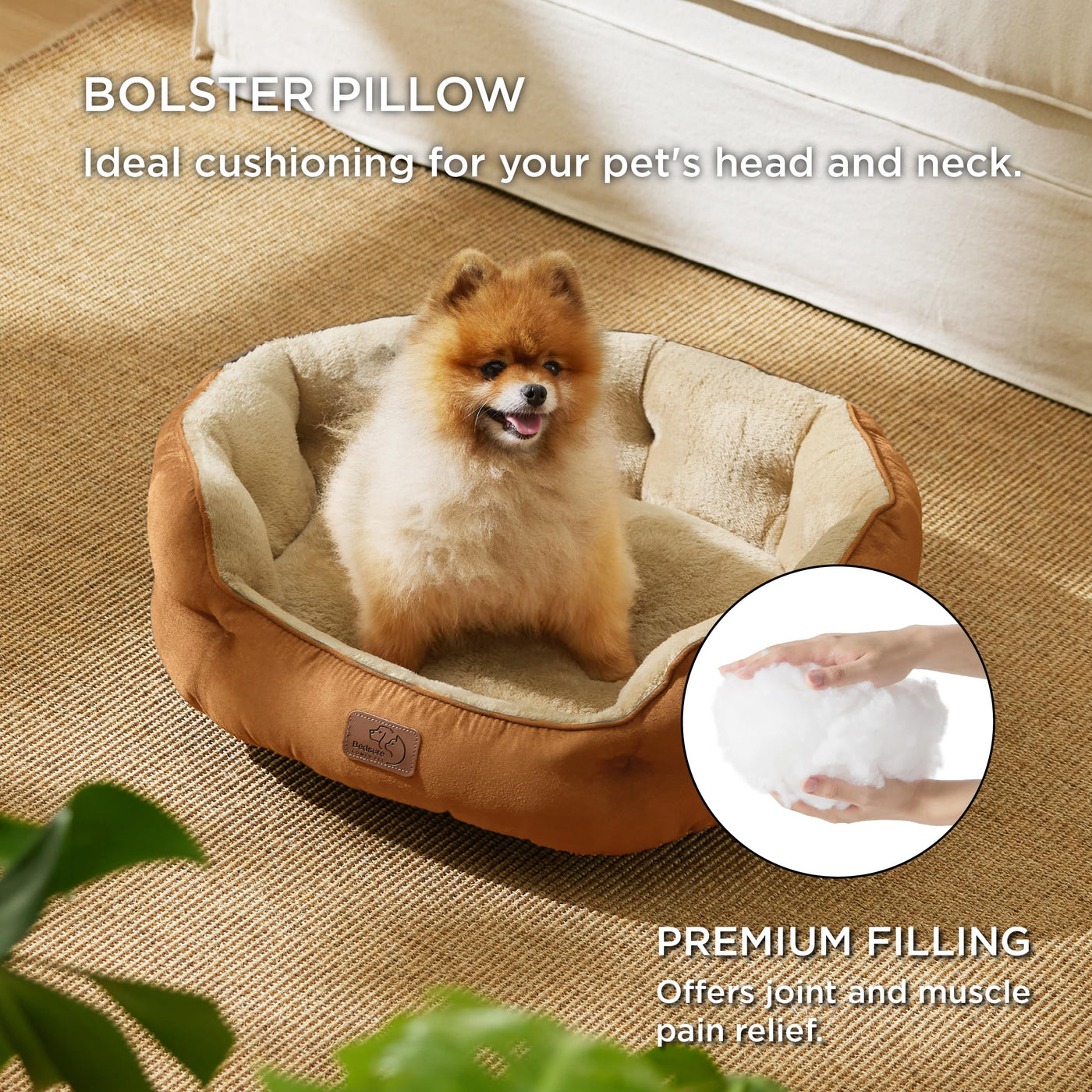 Bedsure Dog Beds for Small Dogs - Round Cat Beds for Indoor Cats Washable Pet Bed for Puppy and Kitten with Slip-Resistant Bottom 25 Inches Terracotta
