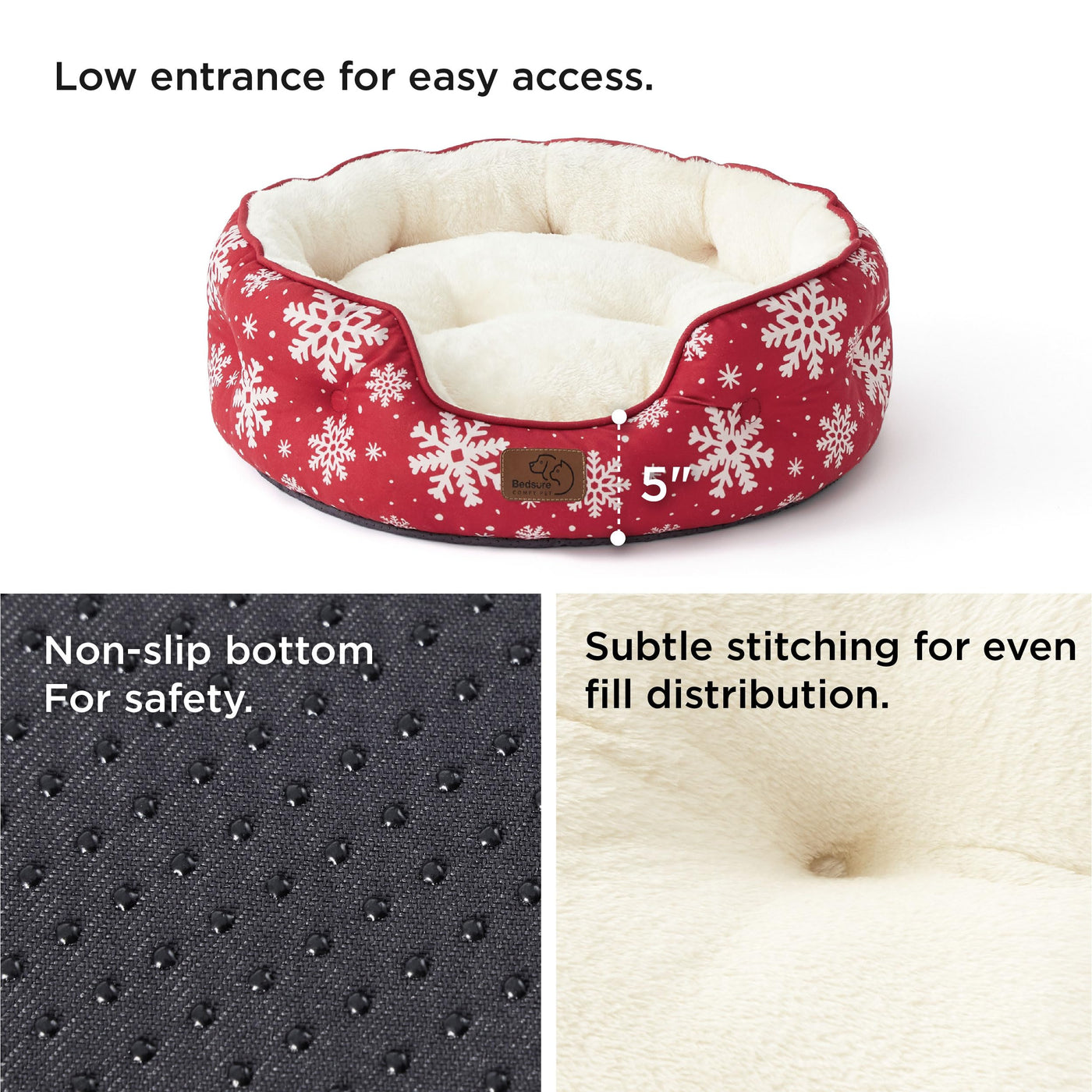 Enhanced Comfort: The round bolster design promotes ultimate comfort and security offering your pet a variety of cozy positions to snuggle. The cushioned bolster shape is deeply filled to support your pet