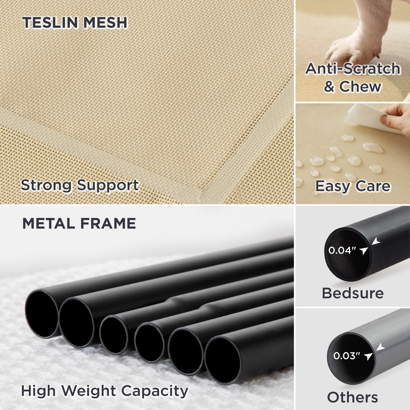 Bedsure Elevated Raised Cooling Cots Bed For Large Dogs, Portable Indoor & Outdoor Pet Hammock With Skid-Resistant Feet, Frame W
