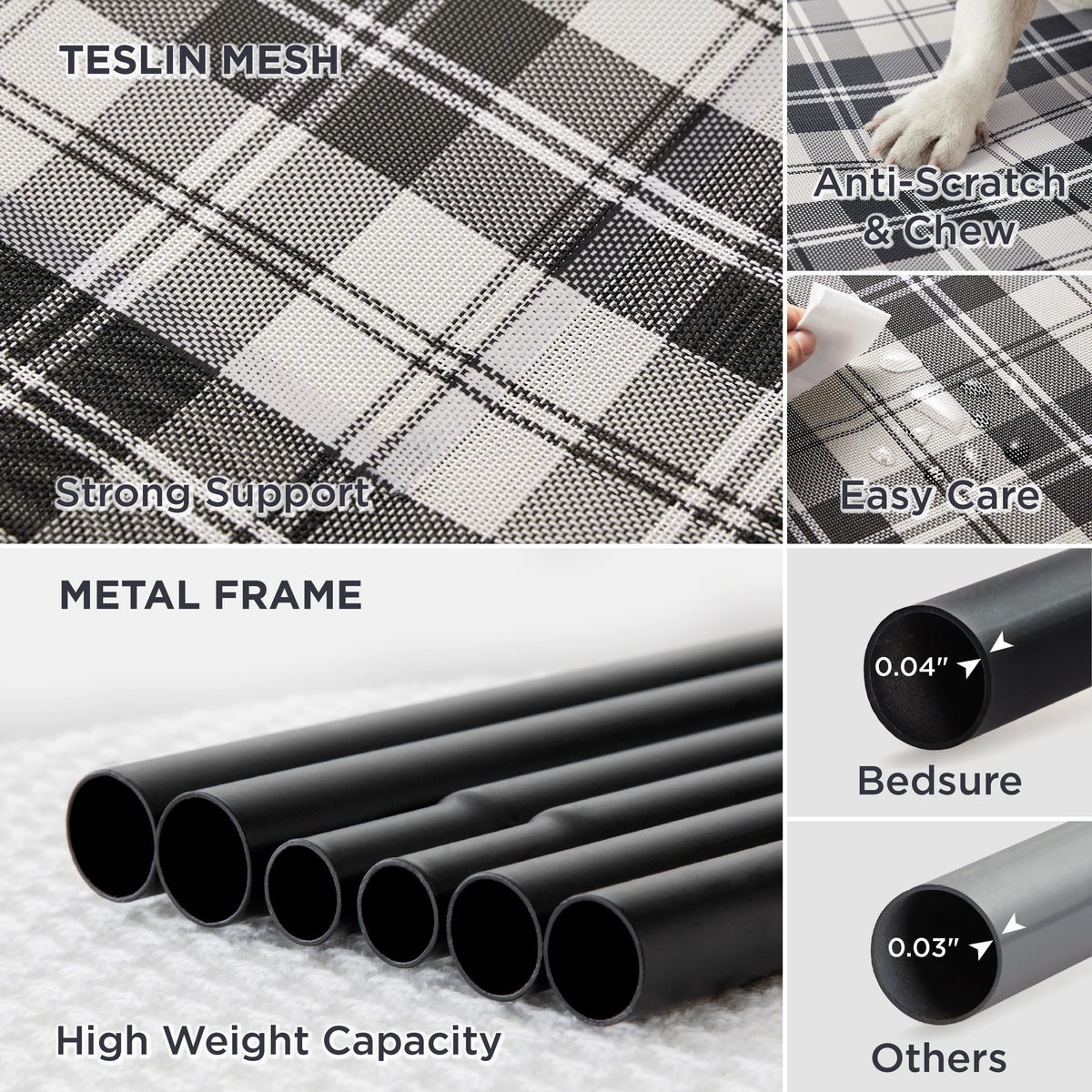 Bedsure Elevated Raised Cooling Cots Bed For Large Dogs, Portable Indoor & Outdoor Pet Hammock With Skid-Resistant Feet, Frame With Breathable Mesh, Checkered White, 49 Inches