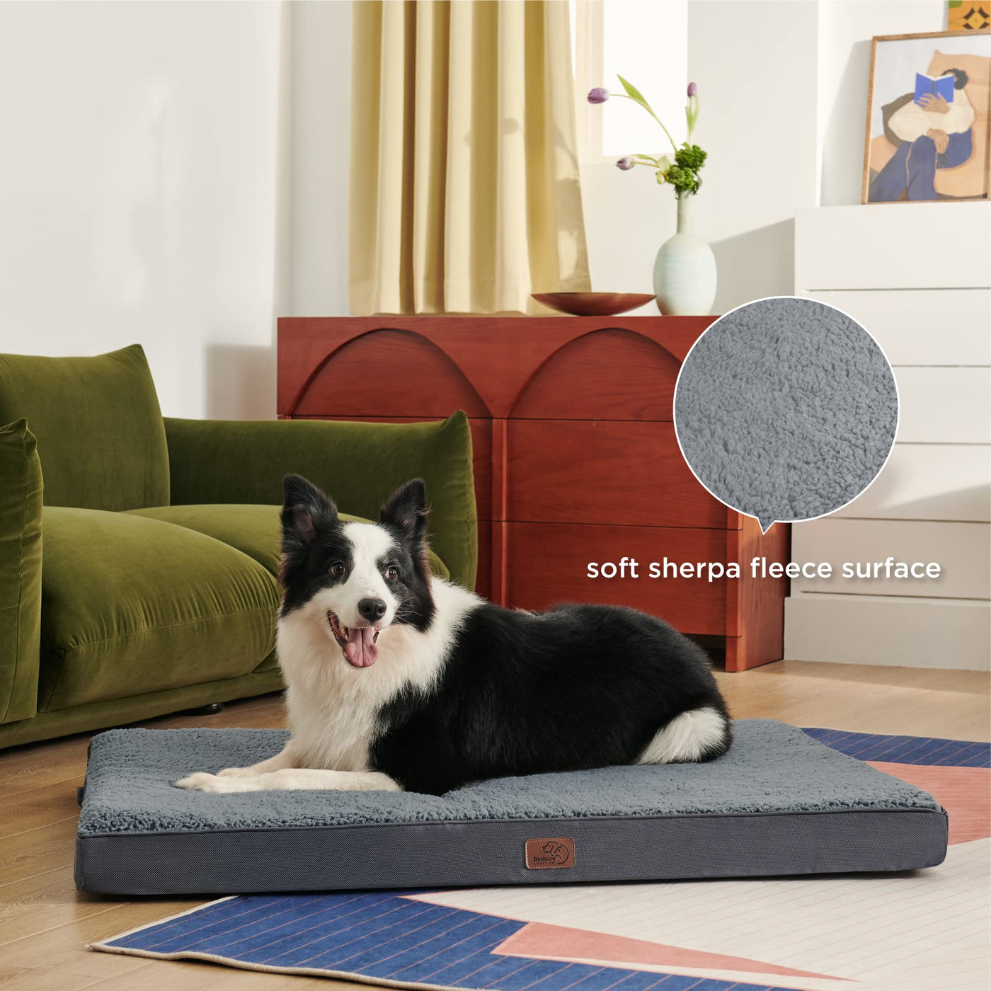 Designed for Pets: The classic pet bed mattress design gives your fluffy friend plenty of room to sprawl out and get cozy in any position Easy to carry and ideal for use indoors and outside in a crate in your car or wherever life takes you All-Seasons Bed: The two-sided design features warm and cozy sherpa with a reverse side of cool and soft Oxford fabric Durable and suitable for all-season use-keep your dog cool in summer and warm in winter for increased comfort Orthopedic Support: Designed to give your pet unparalleled support for a deep dreamy sleep High-density egg-crate foam distributes weight evenly and provides the perfect amount of pressure relief to reduce joint pain and arthritis discomfort Pet-Safe Materials: certiPUR-US certified foam and luxury sherpa come together to create a dog bed that is as safe as it is comfortable Easy care Removable cover: Featuring an easy-to-remove durable and stain-resistant cover that makes deep cleaning a breeze Simply machine wash and tumble dry
