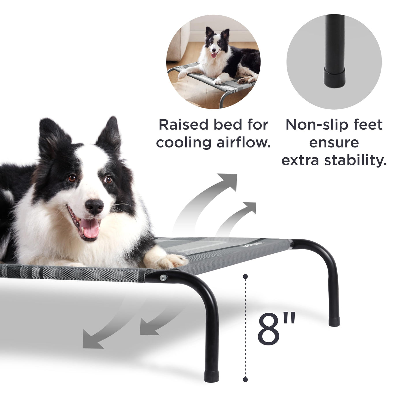 Cooling Comfort: This dog bed's elevated design increases airflow for all season comfort keeping your pet cool even on hot days. The height is just right for dogs of all ages from puppies to seniors.