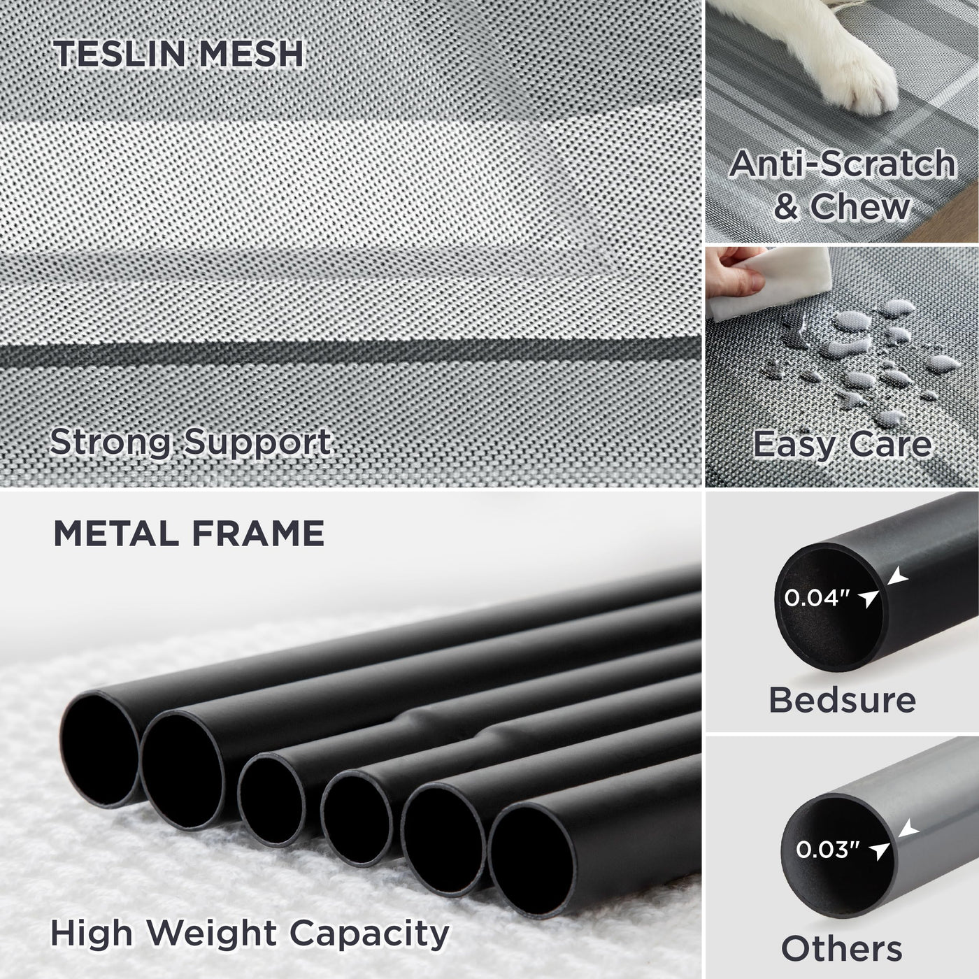 Strong & Durable: Heavy-duty Teslin mesh holds up against scratching and chewing providing excellent support and even pressure distribution to reduce joint and muscle pain. The strength-tested lightweight metal frame supports dogs up to 75 lbs.