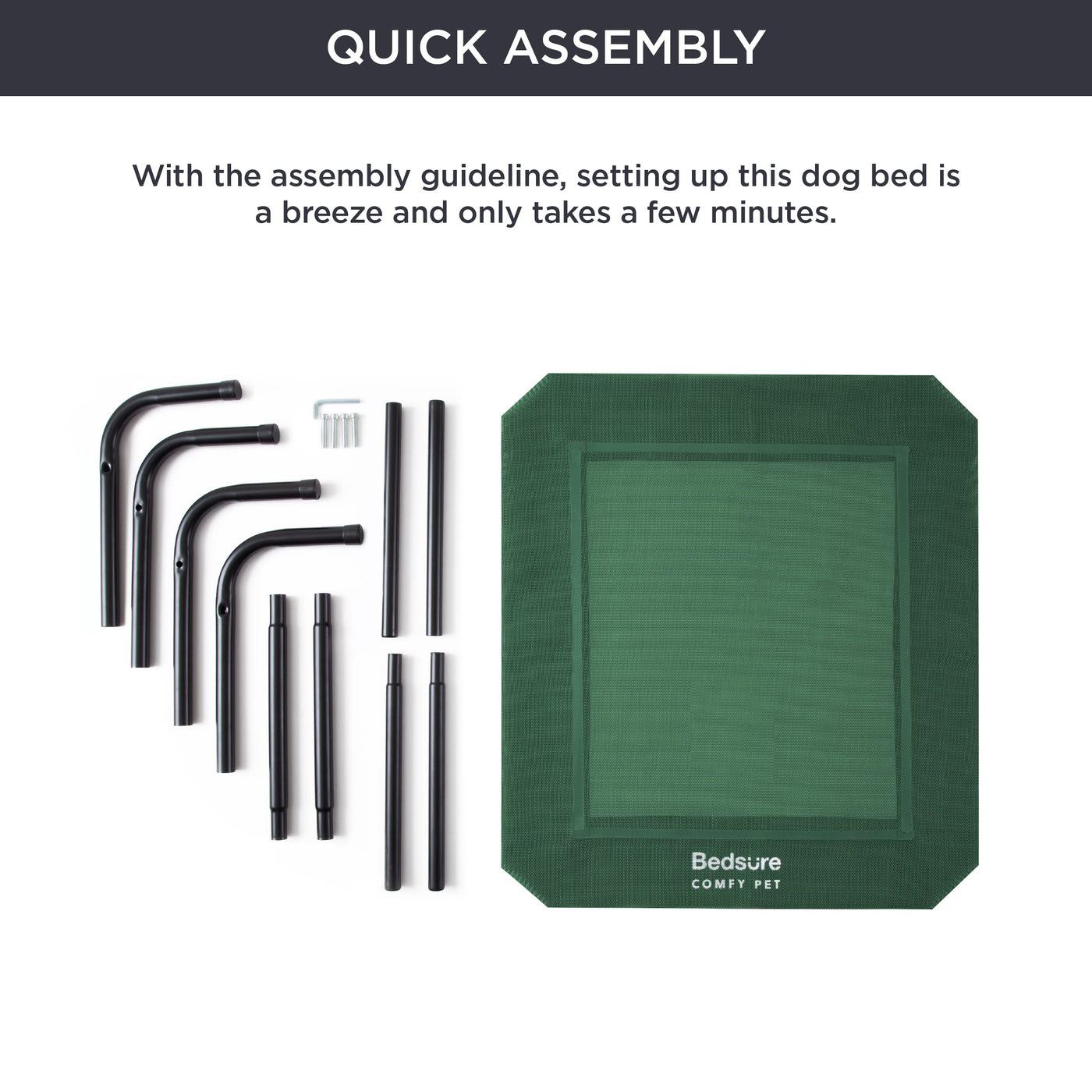 Q: How easy is it to assemble the dog bed?A: The assembly of the Bedsure Large Elevated Cooling Outdoor Dog Bed is quick and easy, taking just a few minutes to set up. Its lightweight design enhances portability, making it ideal for travel.