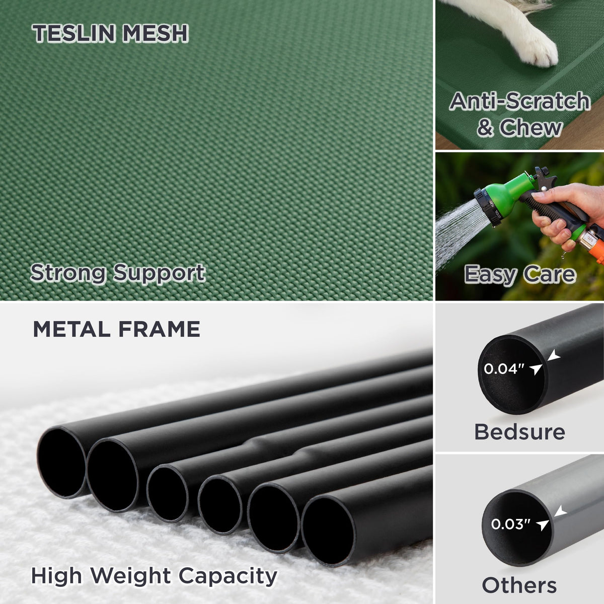 Bedsure Large Elevated Cooling Outdoor Dog Bed - Raised Dog Cots Beds For Large Dogs, Portable Indoor & Outdoor Pet Hammock Bed With Skid-Resistant Feet, Frame With Breathable Mesh, Green, 49 Inches