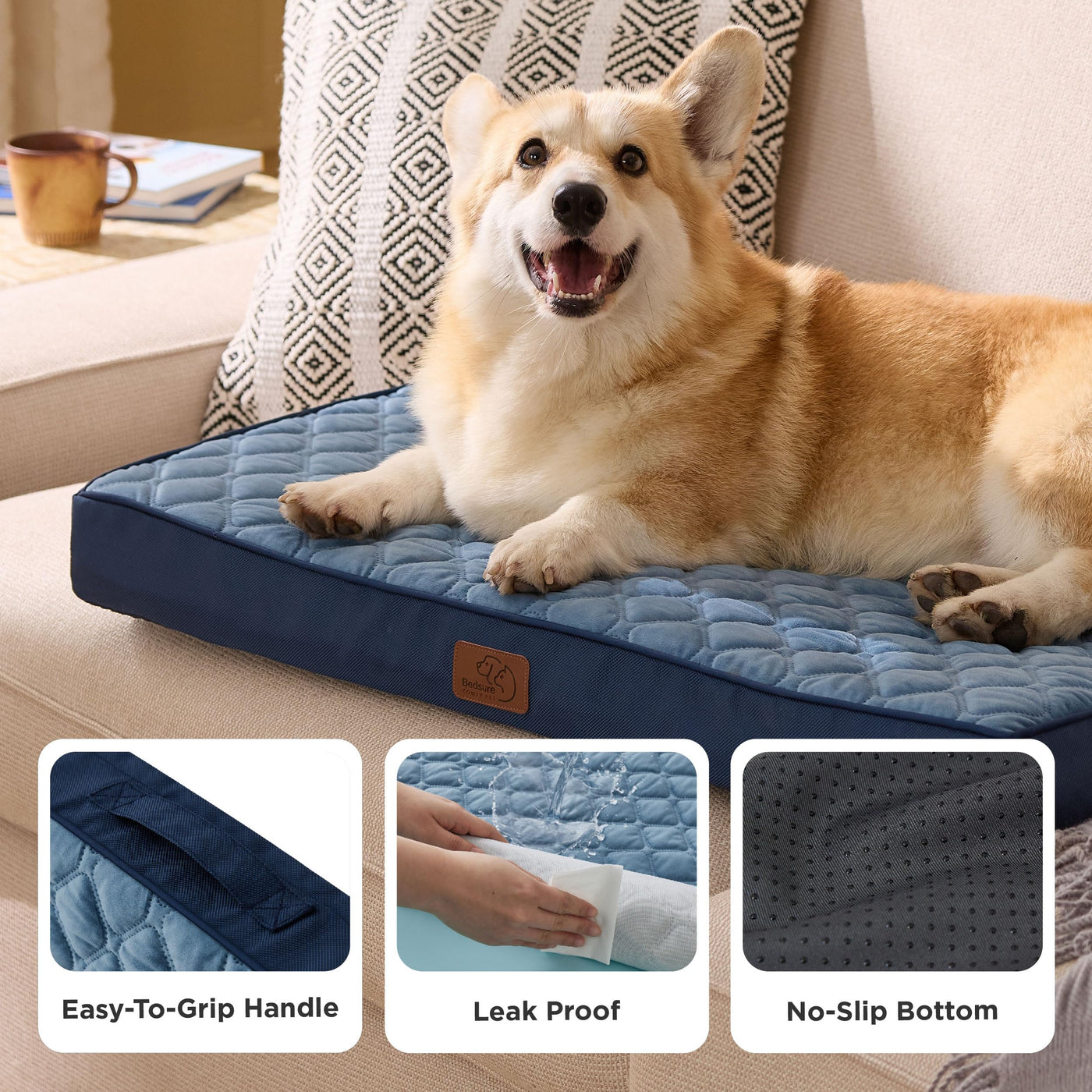 Bedsure Large Orthopedic Dog Bed - Memory Foam, 2-Layer Thick, 30X20X3 Inches, Navy