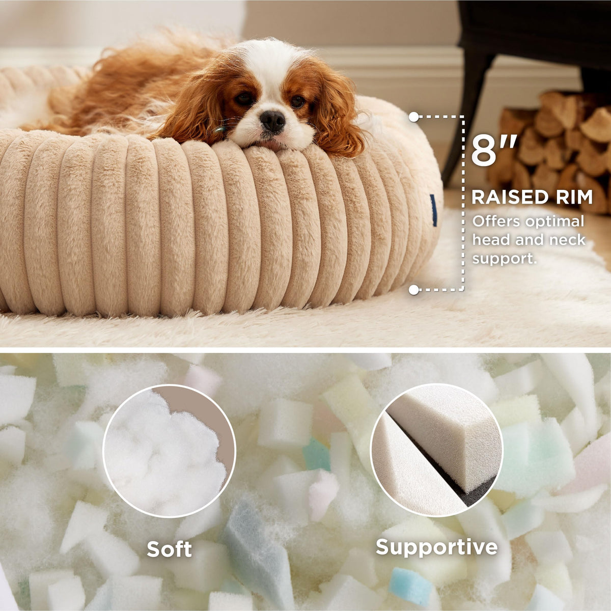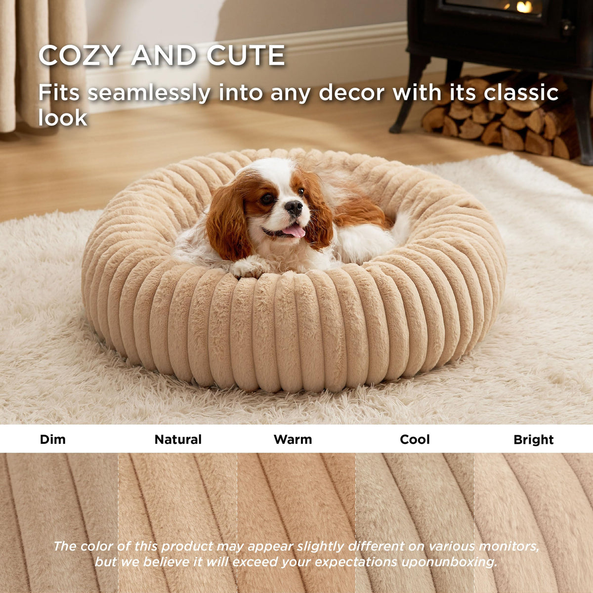 Bedsure Medium Dog Bed - Washable Faux Fur With Corduroy Fleece & Anti Slip Bottom, Round Pet Bed With Removable Cover, Sandy Ta