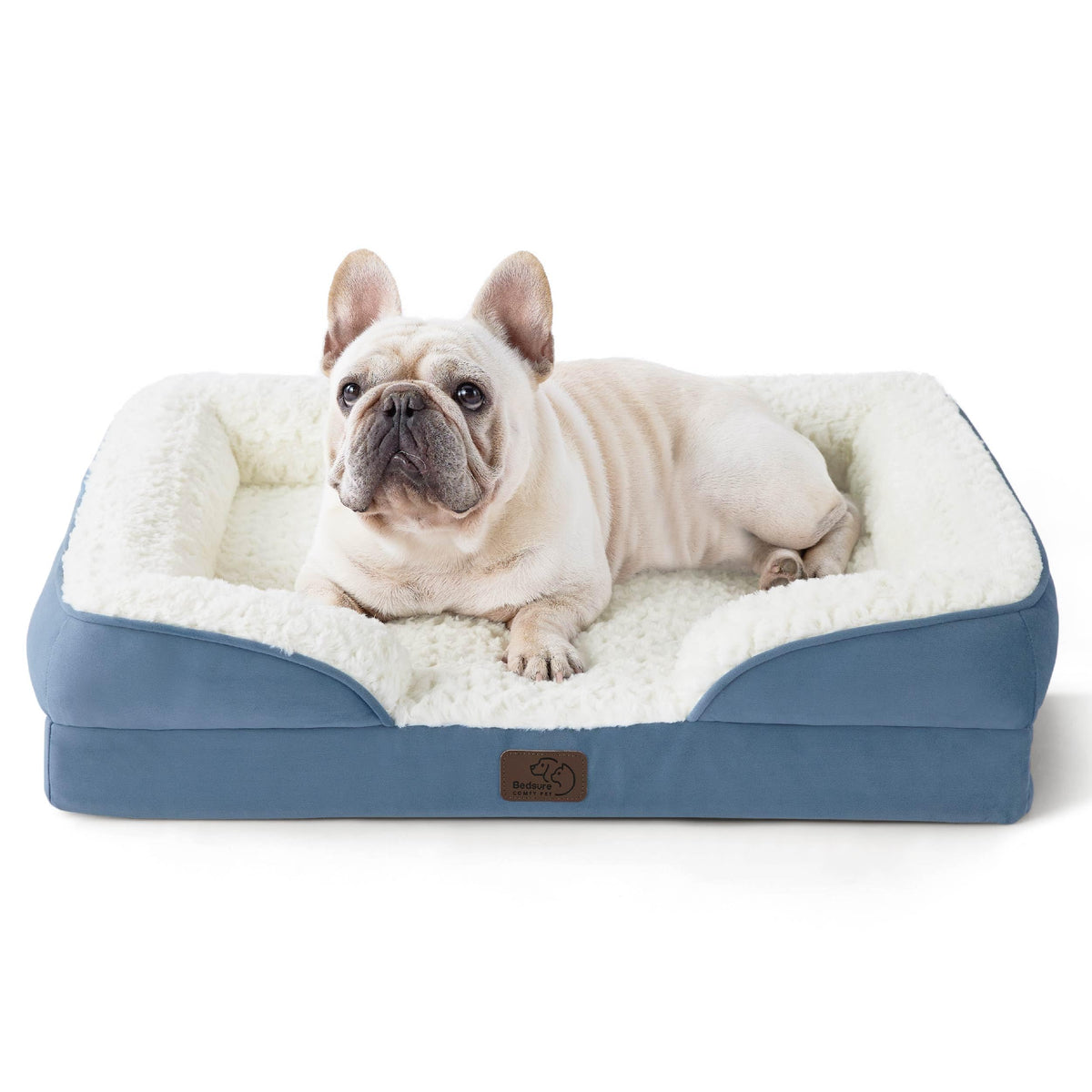 Bedsure Orthopedic Dog Bed For Medium Dogs - Calming Dog Sofa Beds Medium With Luxurious Short Plush, Pet Couch Bed With Removable Washable Cover, Waterproof Lining And Nonskid Bottom, Faded Denim
