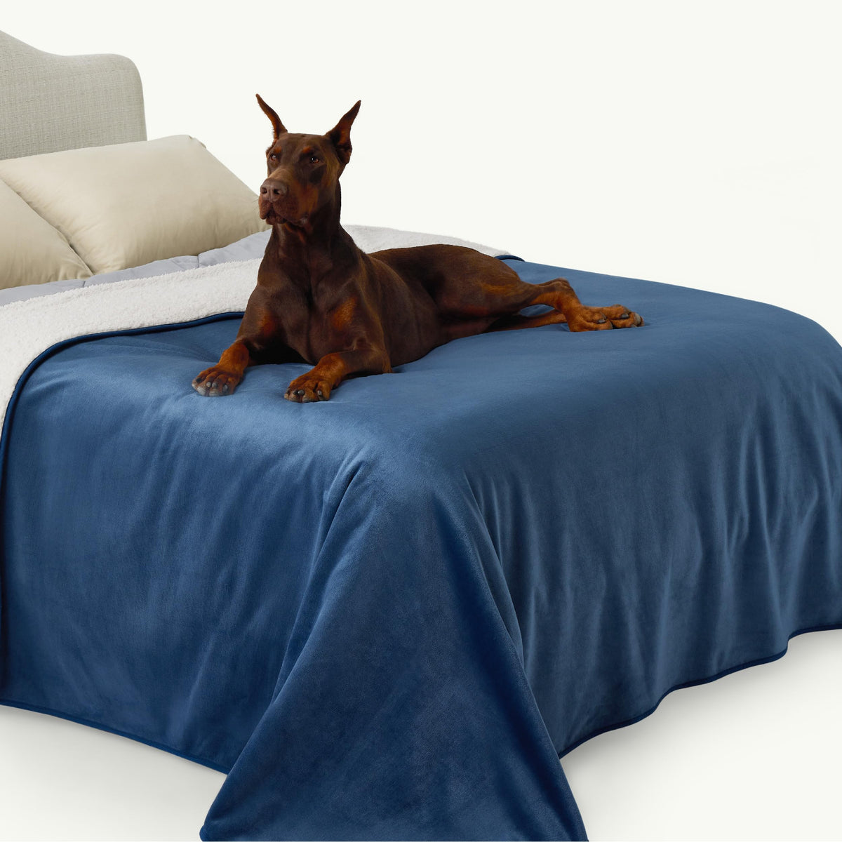 Bedsure Waterproof Blanket For Bed - Sherpa Fleece Waterproof Dog Blankets For Large Dogs Pet Blankets For Bed/Couch/Dog Crate Soft Plush Reversible Furniture Protector King Size 108''X86'' Blue