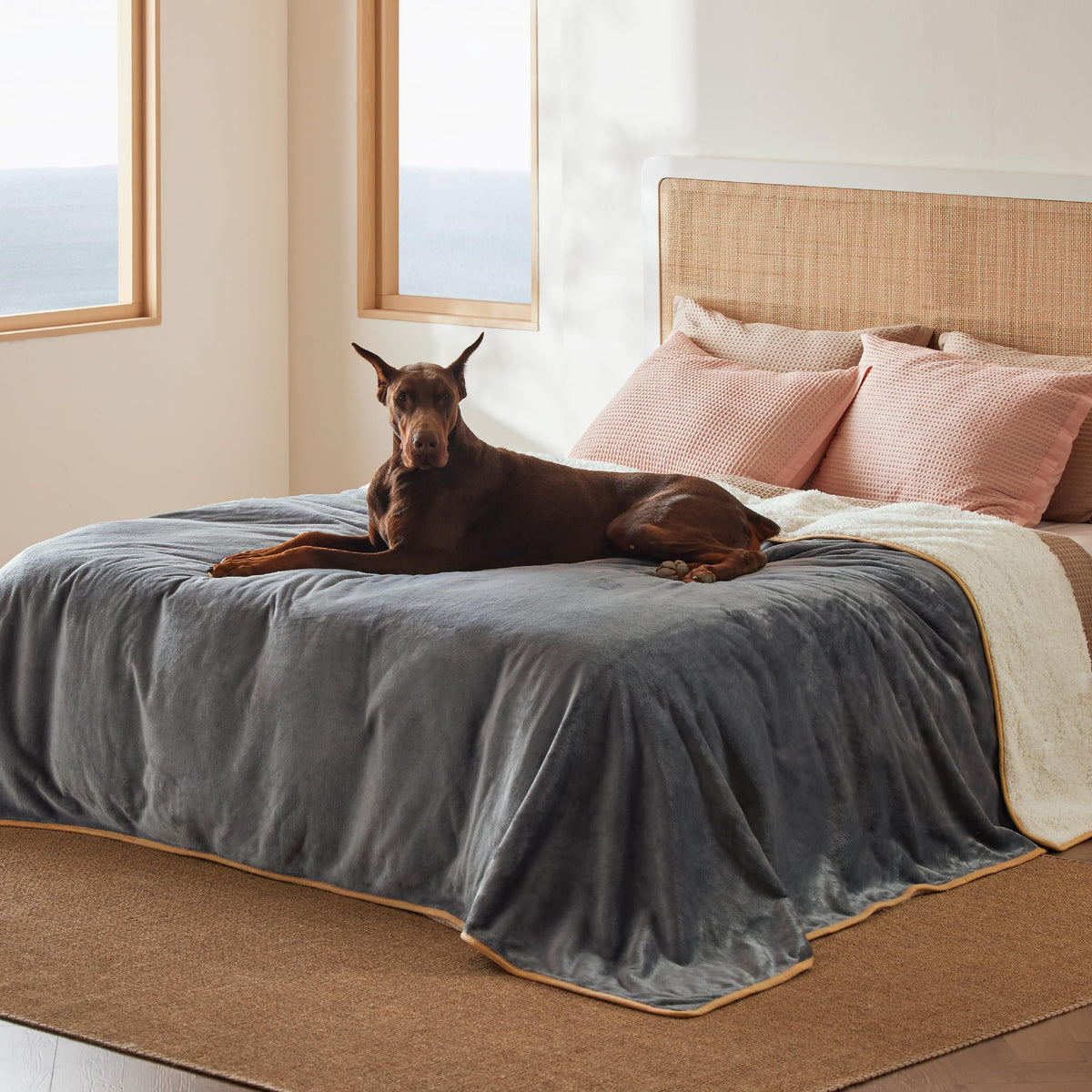 Bedsure Waterproof Blanket For Bed - Sherpa Fleece Waterproof Dog Blankets For Large Dogs Pet Blankets For Bed/Couch/Dog Crate Soft Plush Reversible Furniture Protector King Size 108''X86'' Grey