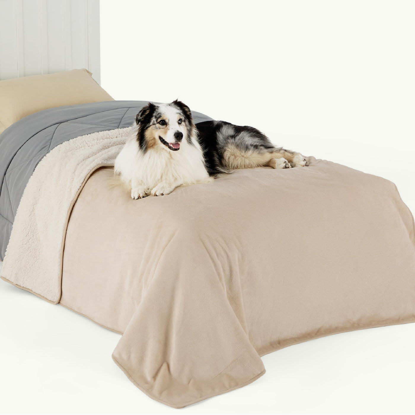 Bedsure Waterproof Blanket For Bed - Sherpa Fleece Waterproof Dog Blankets For Large Dogs Pet Blankets For Bed/Couch/Dog Crate Soft Plush Reversible Furniture Protector Twin Size 80''X60'' Cream