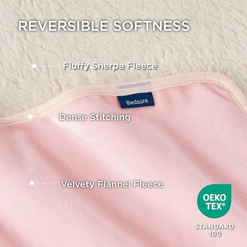 Bedsure Waterproof Blanket For Bed - Sherpa Fleece Waterproof Dog Blankets For Large Dogs, Pet Blankets For Bed/Couch/Dog Crate, Soft Plush Reversible Furniture Protector, Twin Size, 80'X60', Pink