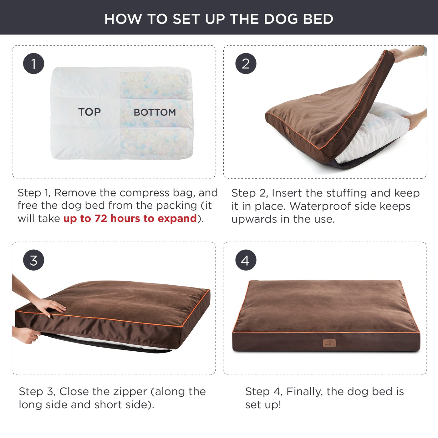 Bedsure Waterproof Dog Beds For Large Dogs - 4 Inch Thicken Up To 80Lbs Pet Mat Pillows With Removable Washable Cover, Brown