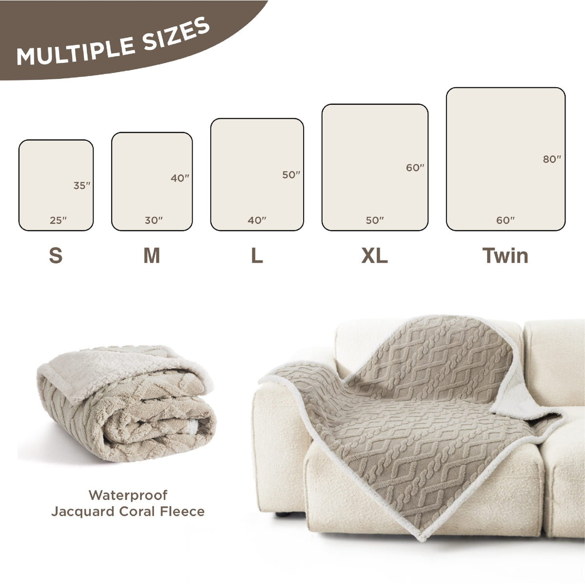 Bedsure Waterproof Dog Blanket For Large Dogs - Pet Blanket For Bed Couch Protector Washable, Premium Jacquard Coral Fleece Cat Throw Blanket, Soft Plush Reversible Furniture Protection, 60X80', Taupe