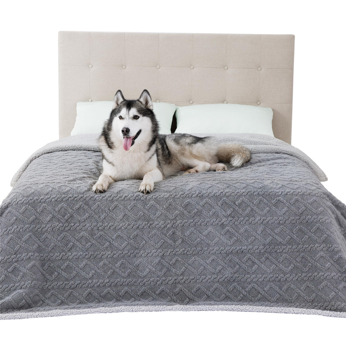Bedsure Waterproof Dog Blankets For Bed - Pet Blanket For Bed Couch Protector Washable, Premium Jacquard Coral Fleece Cat Throw