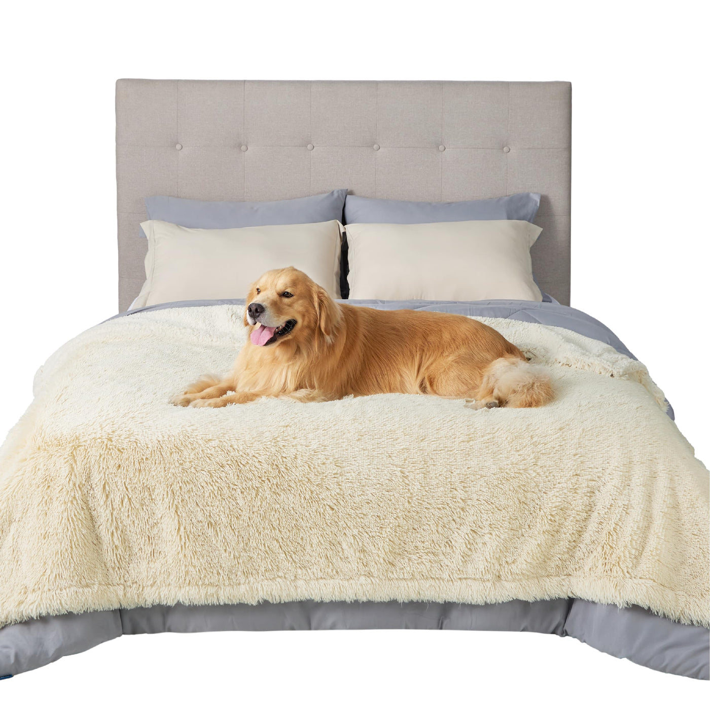 Bedsure Waterproof Dog Blankets For Large Dogs - Calming Cat Blanket For Bed Couch Protector Washable, Long Faux Fur Pet Throw Blanket For Puppy, Reversible Furniture Protection, 60''X80'', Cream