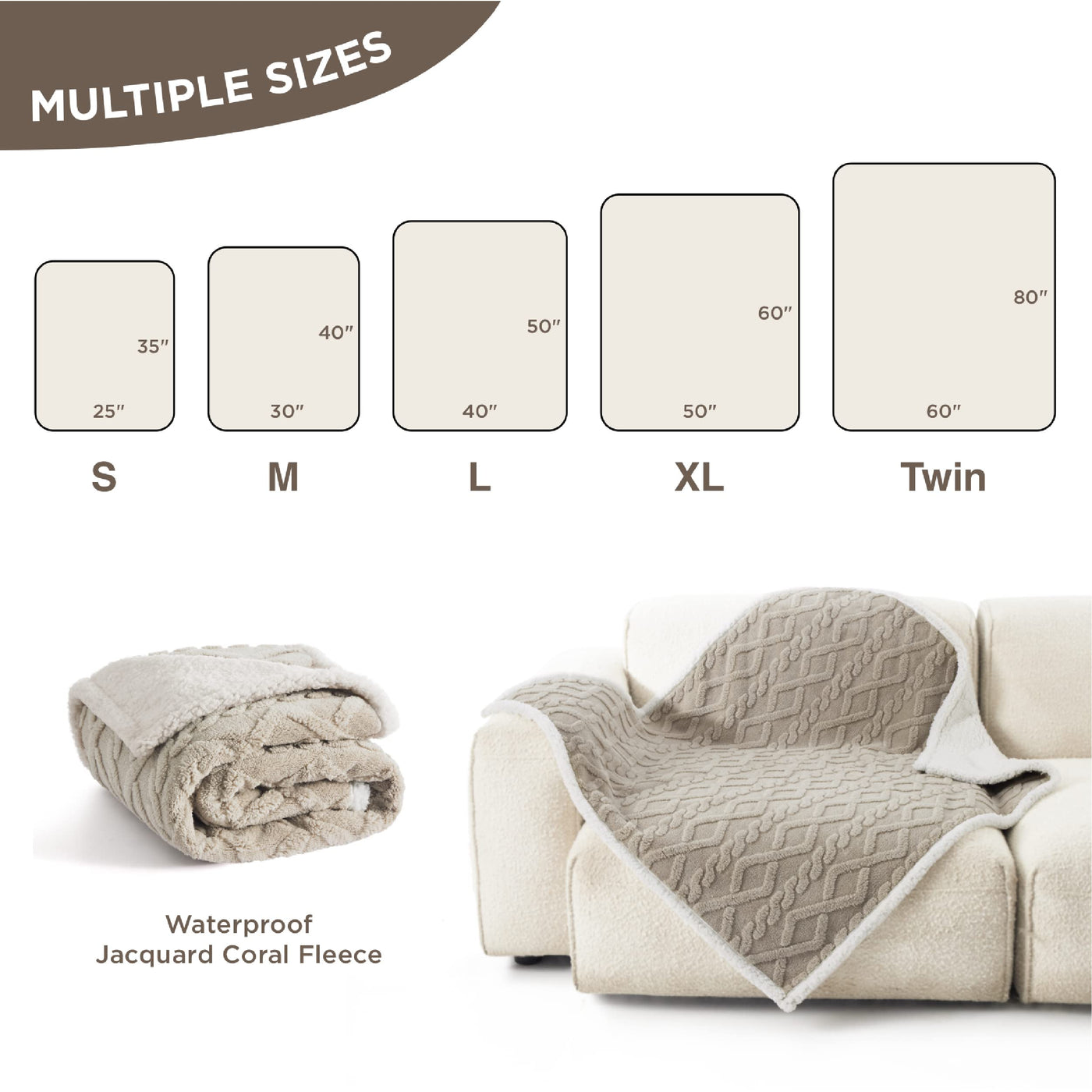 Bedsure Waterproof Dog Blankets For Large Dogs - Pet Blanket For Couch Protector Washable, Jacquard Coral Fleece Cat Throw Blank