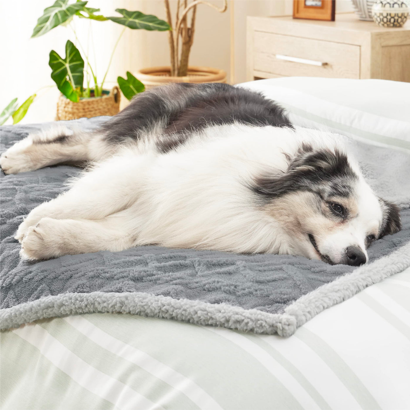Bedsure Waterproof Dog Blankets For Large Dogs - Pet Blanket For Couch Protector Washable, Premium Jacquard Coral Fleece Cat Thr