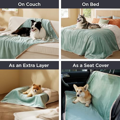 Warm & Cozy Blanket: Dog blanket is lined with warm Sherpa on one side and flannel fleece on the other. Waterproof pet blanket prevents humidity and cold keeping your cats and dogs comfortable and warm.