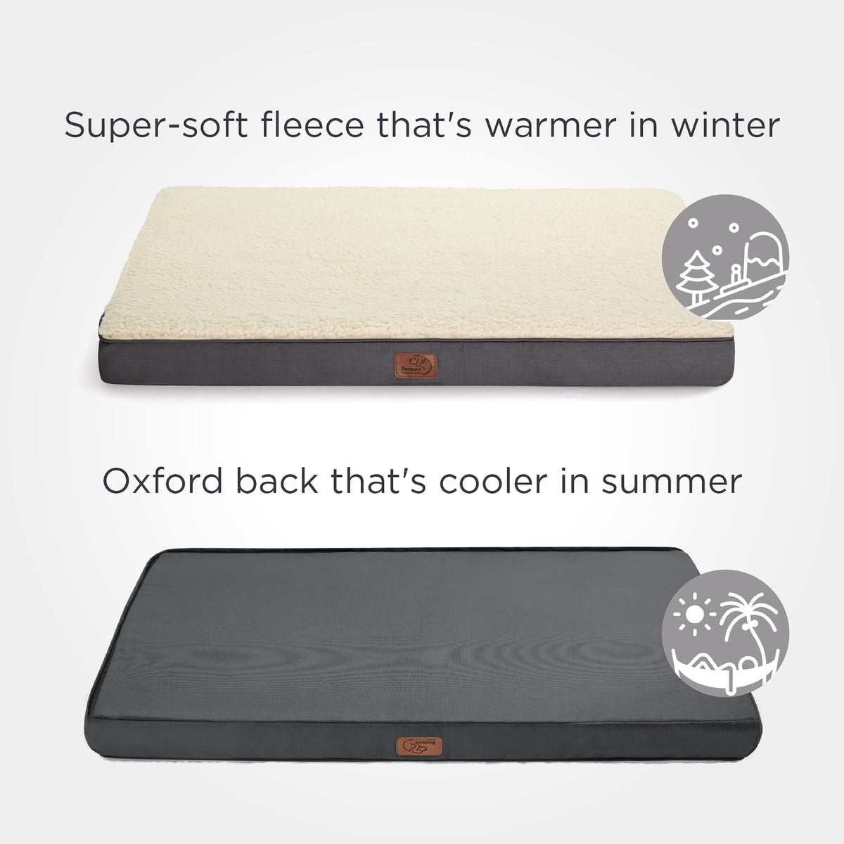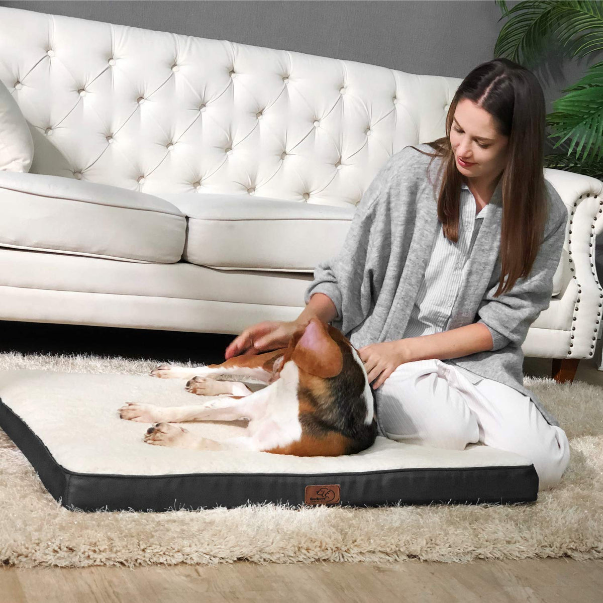 Designed for Pets: The classic pet bed mattress design gives your fluffy friend plenty of room to sprawl out and get cozy in any position Easy to carry and ideal for use indoors and outside in a crate in your car or wherever life takes you All-Seasons Bed: The two-sided design features warm and cozy sherpa with a reverse side of cool and soft Oxford fabric Durable and suitable for all-season use-keep your dog cool in summer and warm in winter for increased comfort Orthopedic Support: Designed to give your pet unparalleled support for a deep dreamy sleep High-density egg-crate foam distributes weight evenly and provides the perfect amount of pressure relief to reduce joint pain and arthritis discomfort Pet-Safe Materials: certiPUR-US certified foam and luxury sherpa come together to create a dog bed that is as safe as it is comfortable Easy care Removable cover: Featuring an easy-to-remove durable and stain-resistant cover that makes deep cleaning a breeze Simply machine wash and tumble dry