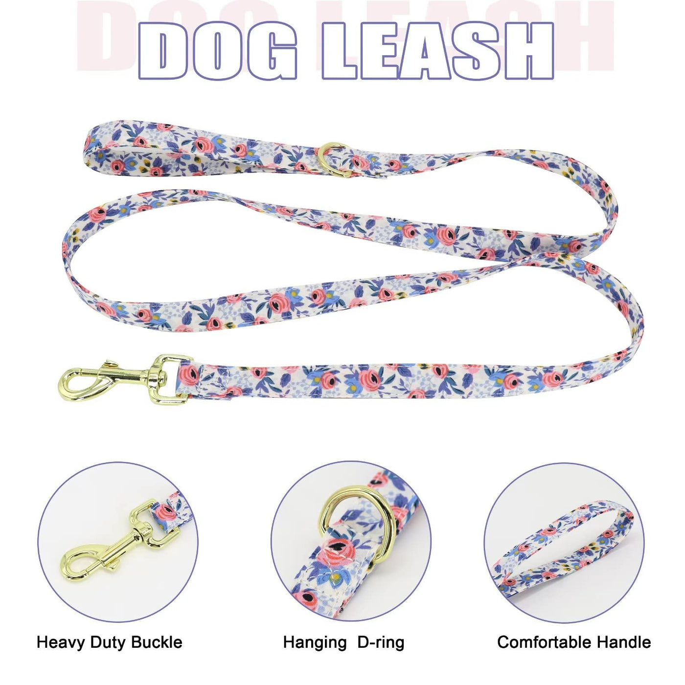 Beirui Cute Girl Dog Collars, Harnesses & Leashes Set - Adjustable Dog Collar And Leash Set With Flower - Soft Mesh Dog Vest Harness For Puppies Small Medium Dogs (Blue,M)