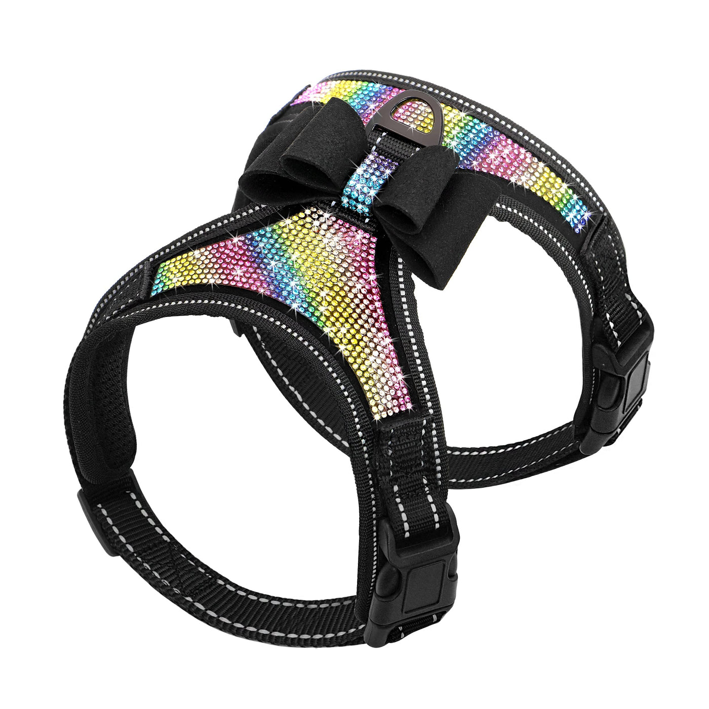 Beirui Rhinestone Dog Harness - Reflective Bling Nylon Dog Vest With Sparkly Bow Tie For Small Medium Large Dogs Walking,Wedding And Party,Black Colored Rhinestones,L