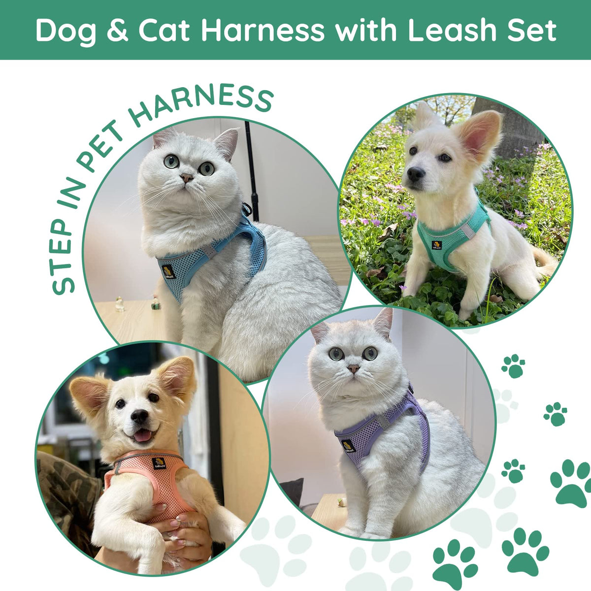 Suitable Sizelease measure your puppys neck girth and chest girth dont choose size by weigh only then refer to the sizing chart If your puppys neck girth or chest girth is between two sizes it is recommended that choose the larger size Step In Design for Easy on and OffOur Step in vest harness design makes it easy to use Small dog harness with magic tape strong buckle with safety lock and double D rings ensure no accidental detachment Breathable Air MeshThe puppy harness are made with soft mesh fabric itAs lightweight but sturdy easy to clean and quick-dry The step in harness design make the pulling pressure distributed to the body to prevent choking Safe and comfortable HarnessWith reflective strip design the dog harness strip provides extra visibility and safety for day or night walking The leash also has reflective strip more safety uaranteeWe promise to provide good customer service If you have any questions about our dog harness please feel free to contact us our customer service staff will reply you within 24 hours