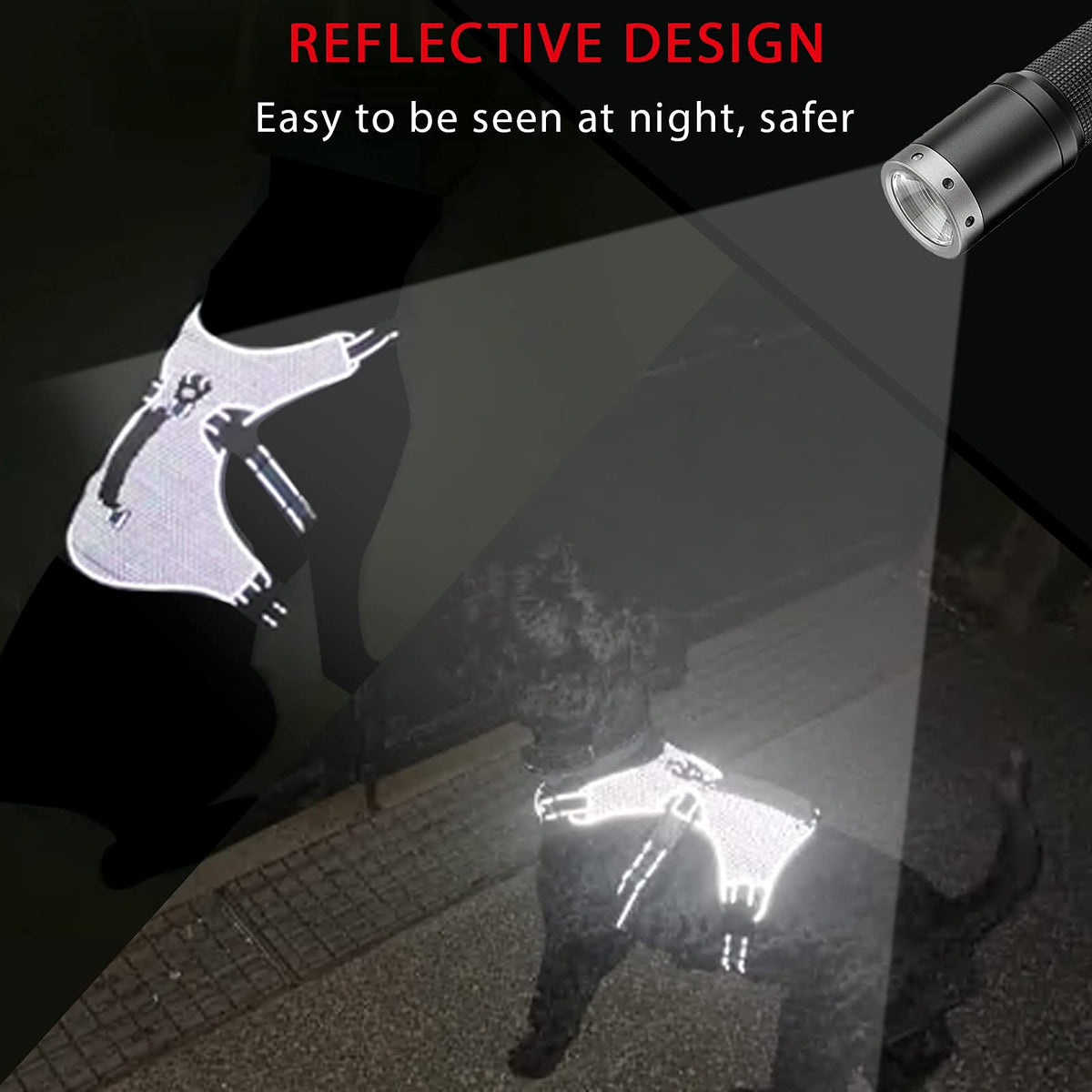 ?REFLECTIVE & BUILT TO LAST?- There are reflective tapes which are around the large dog harness for night safety. For the outside of harness we use high intensity polyester which is durable lightweight non-toxic inside is breathable mesh soft and comfortable for skin.Tips: In between sizes choose the larger size.