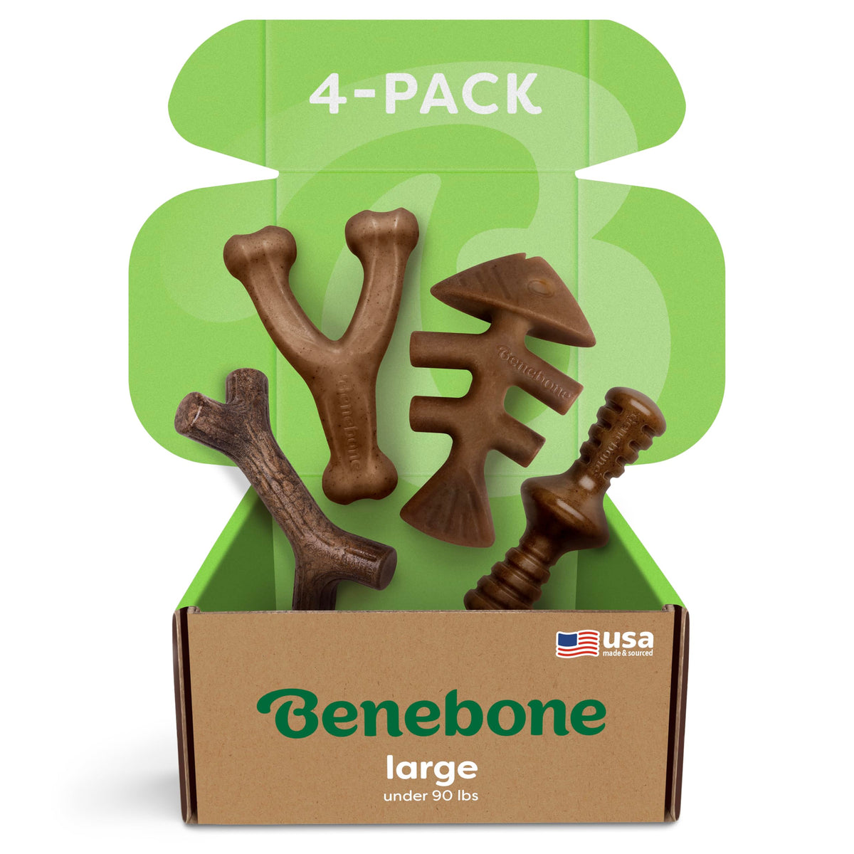 Benebone Large 4-Pack Dog Chew Toys For Aggressive Chewers, Made In Usa, 90Lbs And Under