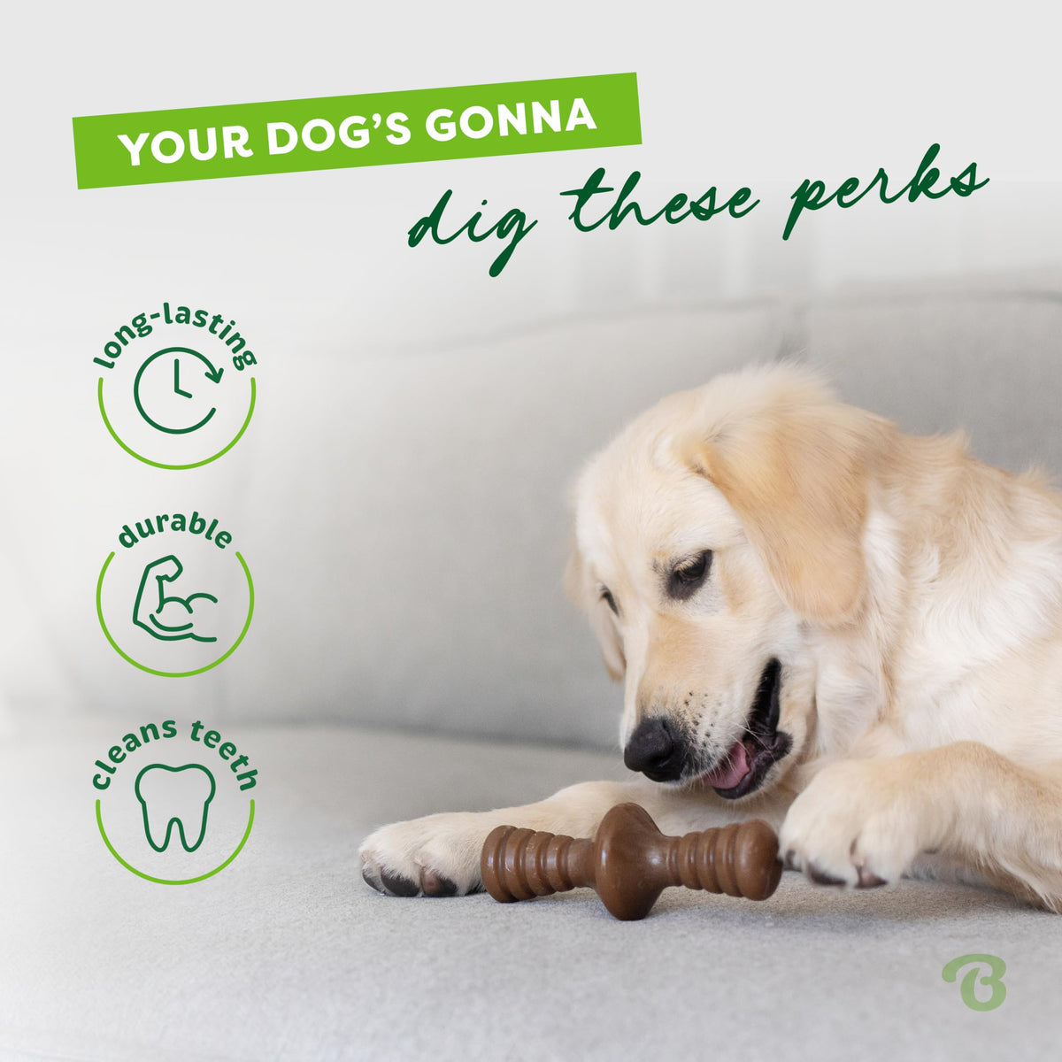 Dogs love to chew, especially on stuff that tastes like real chicken. They also love a good game of chase. Enter the Zaggler. About Benebone At Benebone, we started with the premise that dogs experience scent and flavor in a way we cant even grasp. So we ditched the neon colors and loud squeaks. Inspired by a dogs powerful sense of smell, we developed a long-lasting durable chew thats jam-packed with real chicken. Once your dog takes a bite of our USA-made chews, hell be hooked. Were Obsessed with Safety Too Wonder if Benebone is right for your dog? Heres what you need to know. Since its hard, its important that your pup has strong teeth. If youre unsure, check with your vet. Nobody likes an unexpected trip to the dentist. Keep an eye out for wear and tear. Within a month or so, we find that most dogs chew Benebone into submission. See the wear page on our website for helpful photos to determine when to replace yours. Keep away from households with peanut or other allergies. Whats Inside? Nothing but Nylon and Real Chicken for Tantalizing Flavor