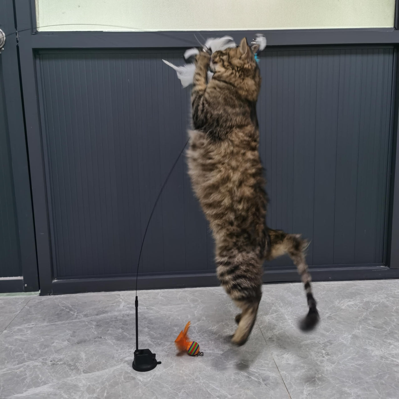 Self-Entertainment Mode: Insert the cat stick pole into the base and attach the suction cup to a smooth surface. The swinging feathers will attract your cat?s attention, keeping them busy and excited.