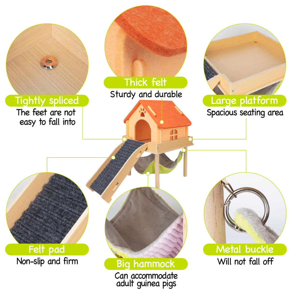 Besnew 3 In 1 Enlarged Guinea Pig Hammock,Wooden Guinea Pig Hideout With House & Platform & Stairs Small Animal Toys For Hiding