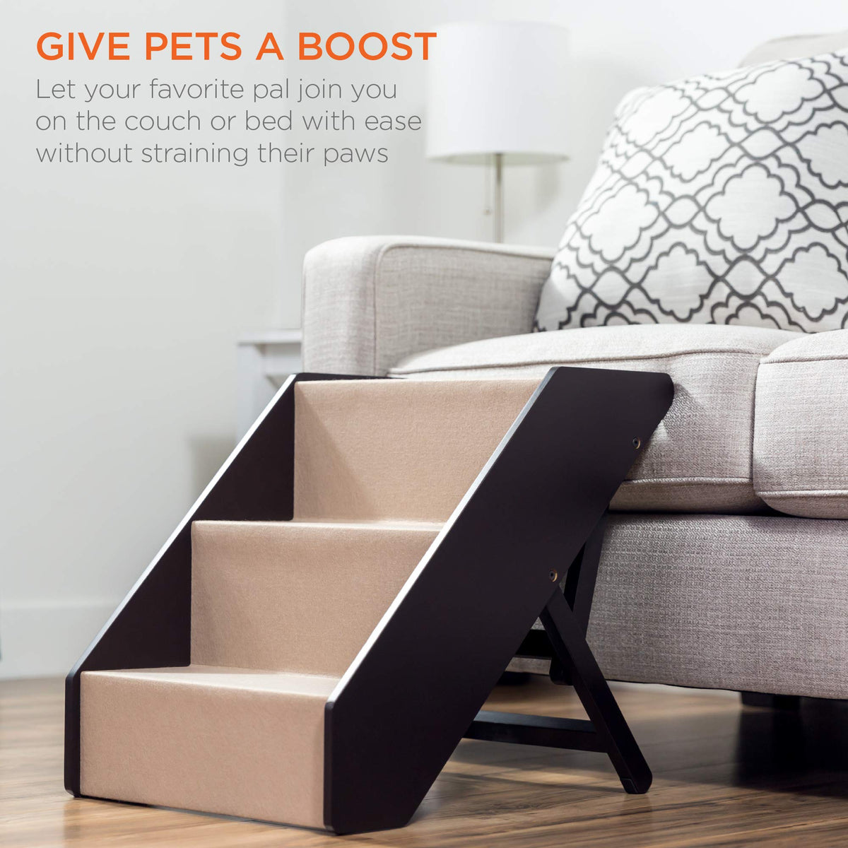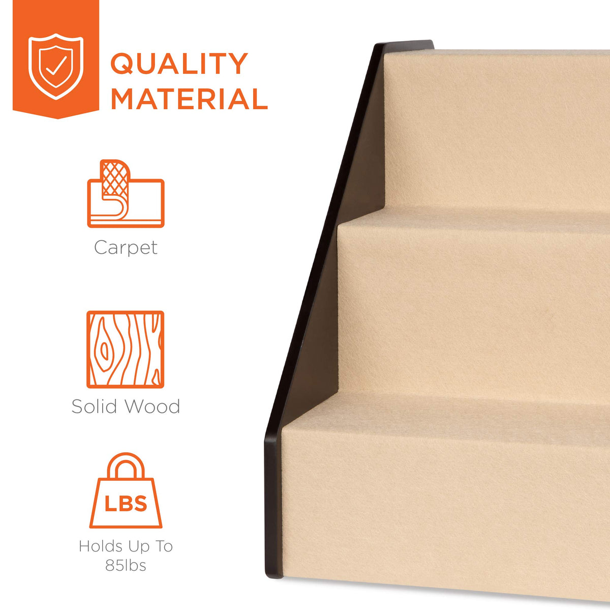 Best Choice Products 3-Step Foldable Adjustable, Non-Slip Wide Wooden Pet Stairs For Living Room, Bedroom, Dog & Cat Sizes Small, Medium, Large W/Carpet, No Assembly, Ideal For Injured, Elderly Pets