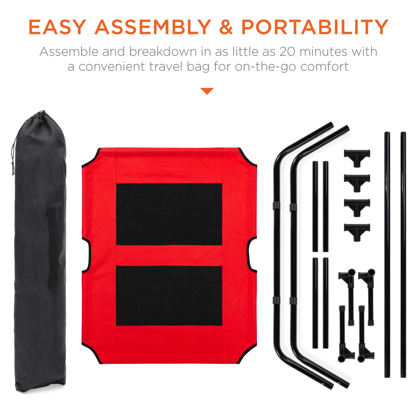 Best Choice Products 36In Elevated Cooling Dog Bed, Outdoor Raised Mesh Pet Cot W/Removable Canopy Shade Tent, Carrying Bag, Breathable Fabric - Red