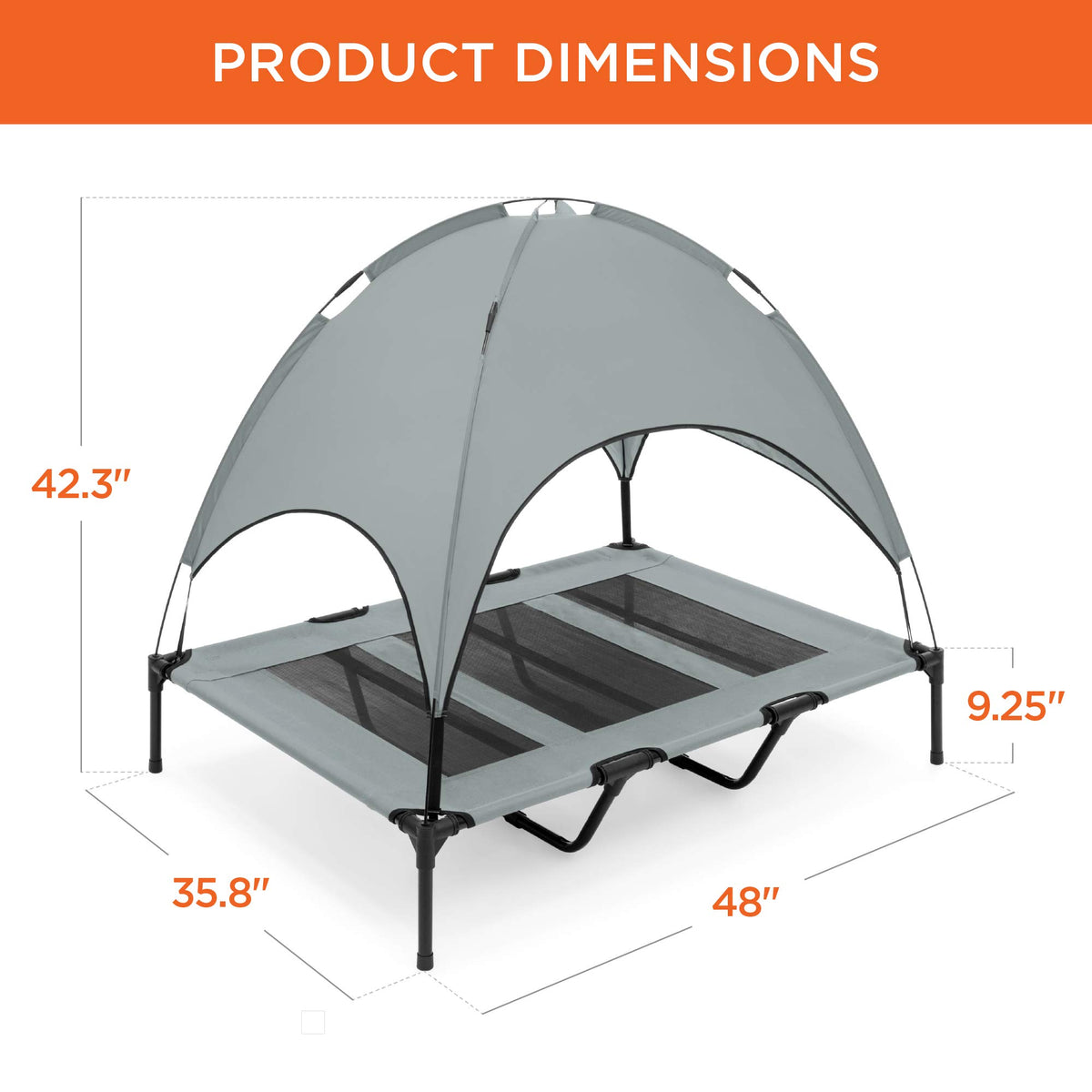 Best Choice Products 48In Elevated Cooling Dog Bed, Outdoor Raised Mesh Pet Cot W/Removable Canopy Shade Tent, Carrying Bag, Breathable Fabric - Gray