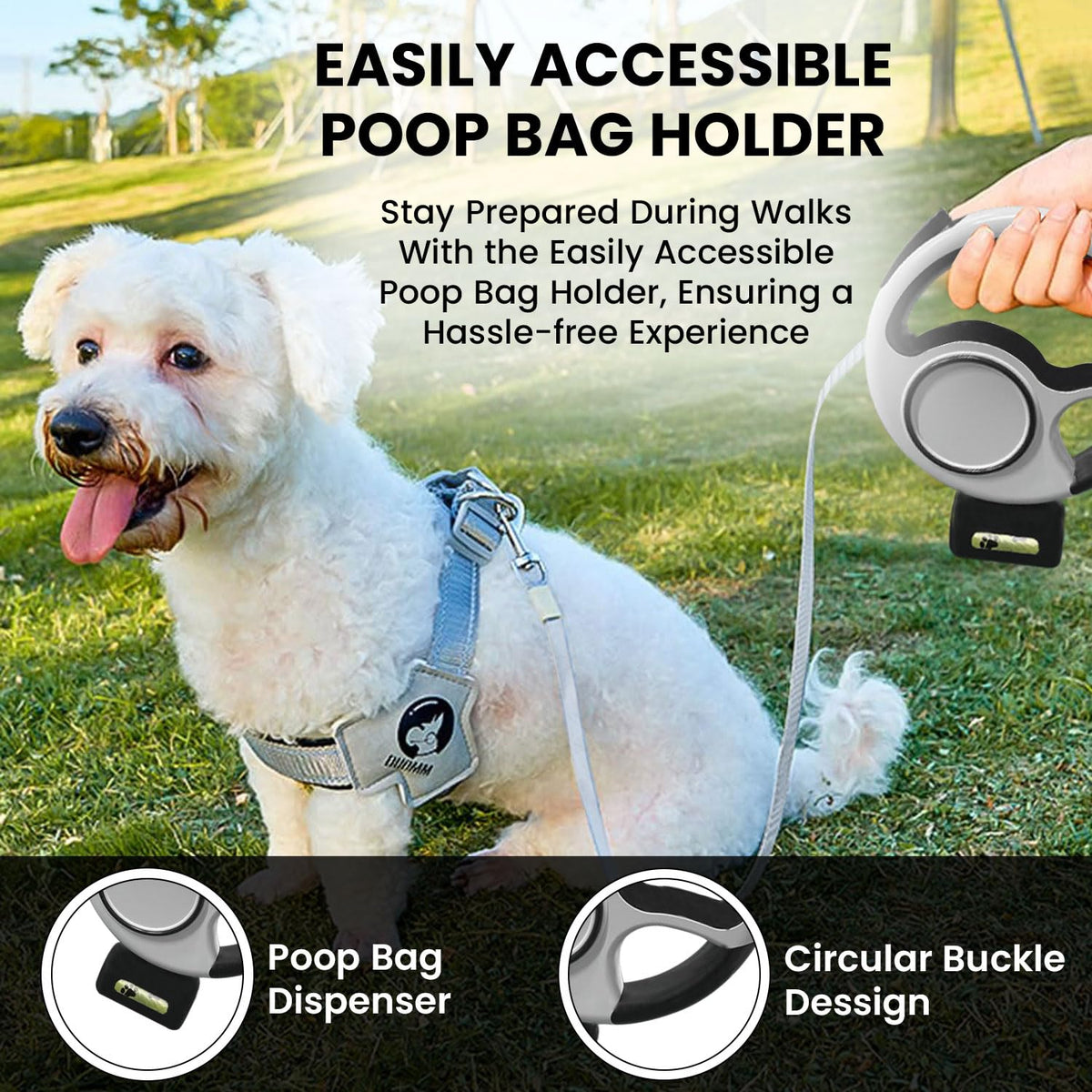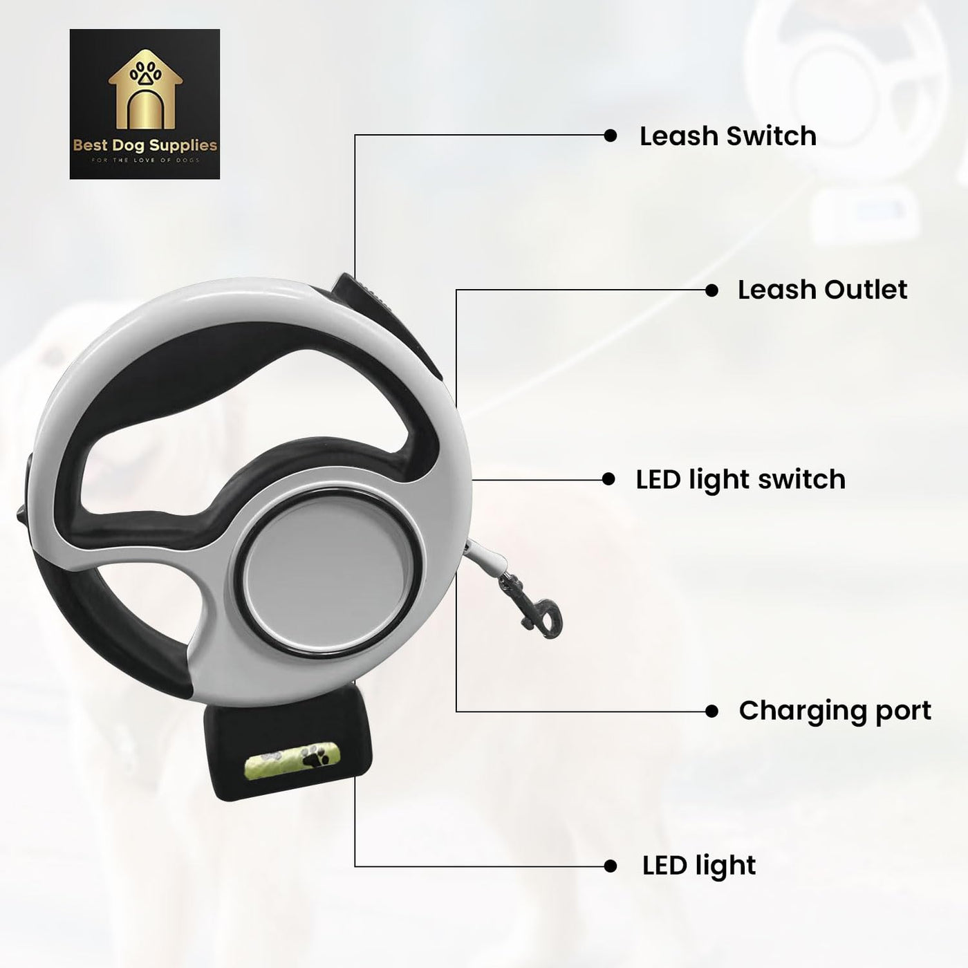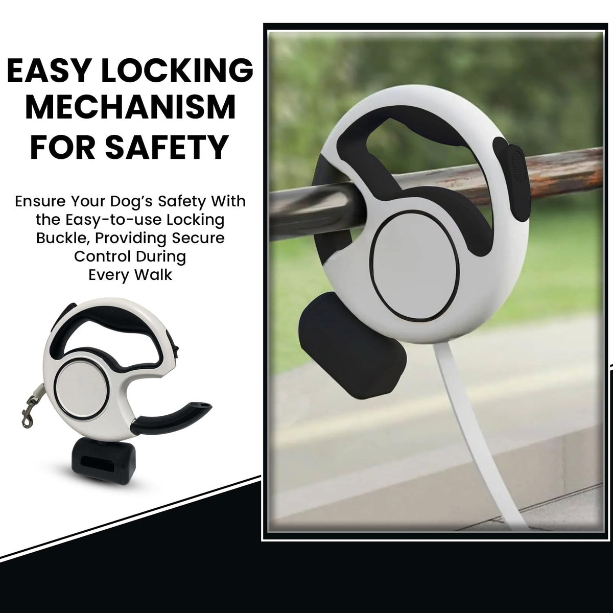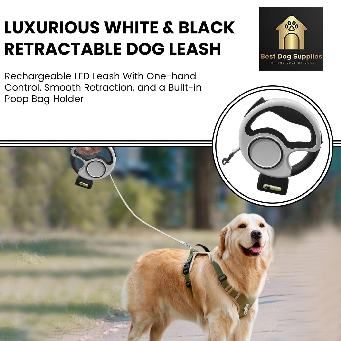 Product Description: Discover The Perfect Blend Of Style And Functionality With Our Black And White Led Retractable Dog Leash. This Luxurious Pet Leash Is Designed To Provide Your Furry Friend With Unfettered Freedom While Ensuring Their Safety During Late-Night Walks. The Retractable Dog Leash Is Lightweight And Durable, Featuring A Strong Tensile Strength To Withstand Even The Most Energetic Pets. The Built-In Led Flashlight Illuminates Your Path, Making Nighttime Strolls Safer For Both You And Your Pet. Equipped With A One-Handed Brake And Ring Buckle Locker, This Retractable Dog Leash With Poop Bag Holder Offers Quick And Easy Control. The High Elastic Nylon Rope Allows For Smooth And Automatic Telescopic Adjustment, Giving Your Pet Up To 3 Meters Of Free Movement. Whether You Have A Small, Medium, Or Large Dog, Or Even A Cat, This Leash Is Suitable For All. Designed With An Ergonomic Handle To Prevent Hand Fatigue, This Black And White Retractable Dog Leash Is Perfect For Long Walks And Travel. Its Compact Size Makes It Portable And Easy To Store. Enjoy The Convenience And Security Of Our Retractable Leash With Poop Bag Holder And Give Your Pet The Freedom To Explore While Keeping Them Safe And Secure. Product Name: Retractable Dog Leash Product Size: (Approx.) 20.2416.2 Cm / 7.951.576.38 Inches Material: Abs Battery: 500Mah Battery Package List: Retractable Dog Leash * 1 Piece Notes: Due To Lighting Effects And Camera Angles, The Color Of The Dog Leash And That Shown In The Picture Might Have A Nuance. Due To Manual Measurement, There Might Be A Tolerance In The Product Size.