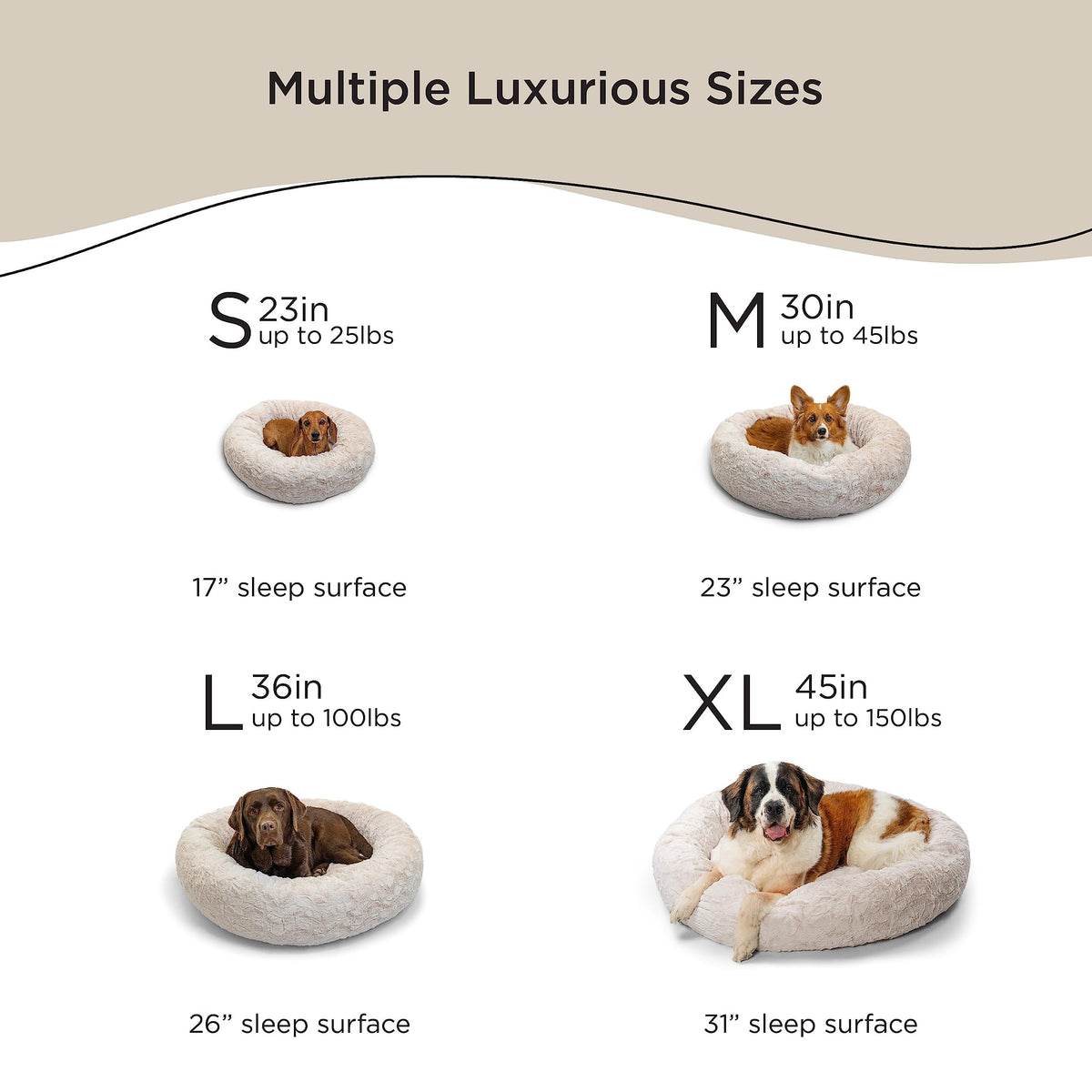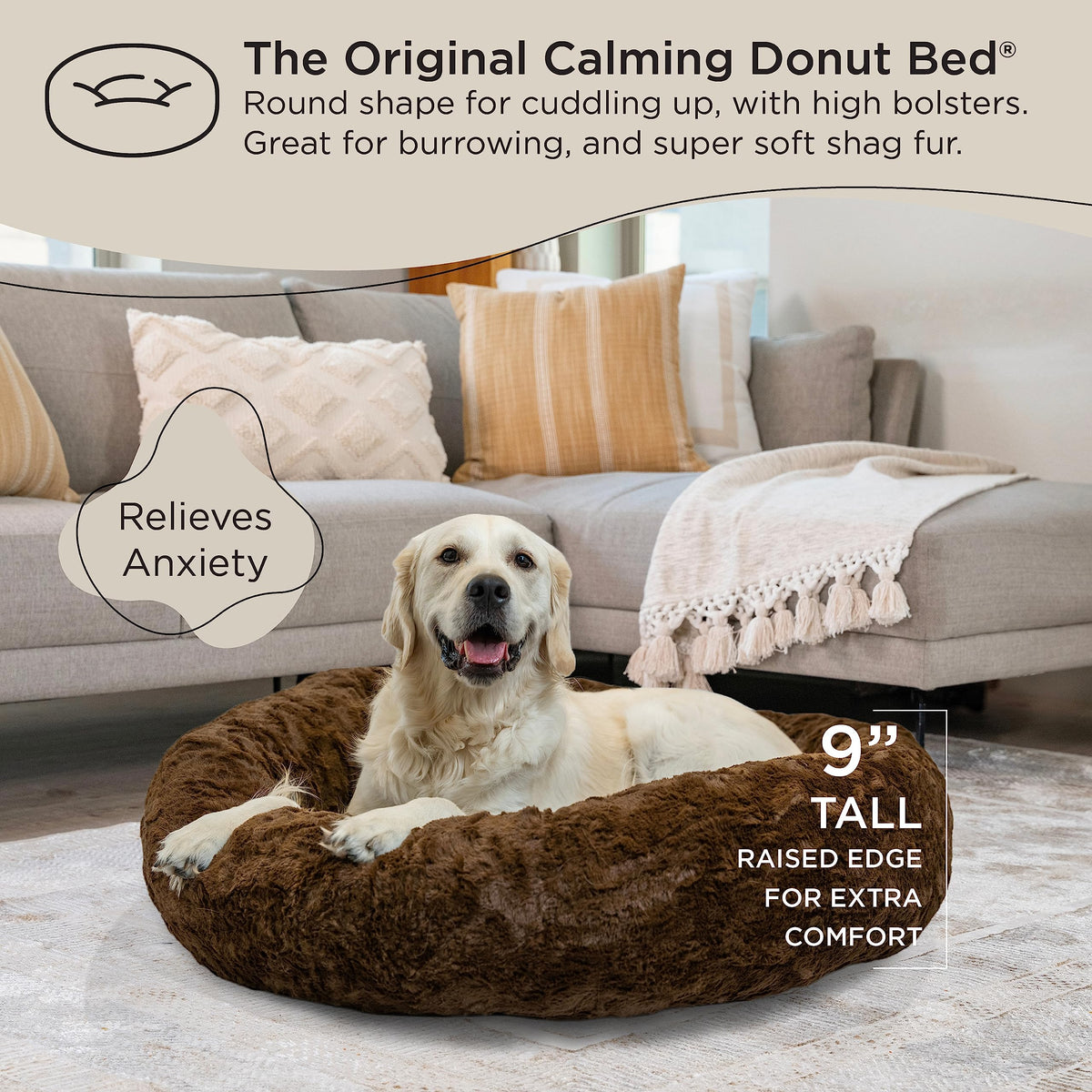 Give Your Pet More Than Just A Bed - Give Them The Calming Comfort They Deserve. Best Friends By Sheri Introduced The Original Calming Donut Dog And Cat Bed As A First-Of-Its-Kind Pet Bed Designed To Help Ease Stress And Promote Better Sleep. The Innovative Cuddler Design Supports Joints And Offers A Calming, Self-Warming Effect With Luxuriously Soft Faux Fur Reminiscent Of A Mother'S Fur Coat. Round And Cozy, This Pet Bed Is Carefully Crafted With A Lofty, Supportive Filling, Allowing Your Pet To Feel Instantly Enveloped In Premium Comfort. For Dogs And Cats Who Like To Burrow, It Creates A Perfect Space For Cuddles And Top-Notch Snuggling, And The Tall Bolsters Help Create A Calming Sense Of Security. The Fluffy Polyfill Within Keeps Its Loft Up To 3Xs Longer Than Standard Pet Beds, Providing Long-Lasting Comfort And Support. Perfect For A Deeper Nights Rest Or A Refreshing Daytime Nap, Our Soothing Bed Is Designed To Provide Optimal Neck, Joint, And Muscle Support. Ideal For Small, Medium, And Large Dogs And Cats, The Original Calming Donut Dog And Cat Bed Comes In Two Faux Fur Styles - Lux And Shag - To Provide Comfort For Every Breed Type. Pets With Long Fur Will Find Comfort In The Lux Design - Shorter Pile, Luxuriously Soft, And Great For Warmer Seasons - While Pets With Short Fur Will Appreciate The Self-Warming Nature Of The Shag Long Faux Fur Option That Creates A Cozy Haven During The Winter Season And In Cooler Climates. Both Styles Feature A Water And Dirt-Resistant Bottom That Helps Prevent Messes From Reaching Your Floors. When Accidents Happen, Or The Bed Needs A Quick Refresh, Cleaning Is A Breeze - Machine Wash And Follow The Instructions On The Label To Ensure Proper Care. Small Beds (18 In And 23 In) Are Entirely Machine Washable, While Medium, Large, And Extra Large Beds (30 In, 36 In, 45 In, And 54 In) Have A Removable Cover For Machine Washing. Safety & Care: For Pet Use Only. This Is Not A Chew Toy. Inspect Regularly And Discard If Any Part Becomes Damaged Or Separated. May Be Harmful If Ingested. If Item Becomes Wet, Some Color Transfer May Occur. Use Caution Around Light-Colored Upholstery Or Carpeting.
