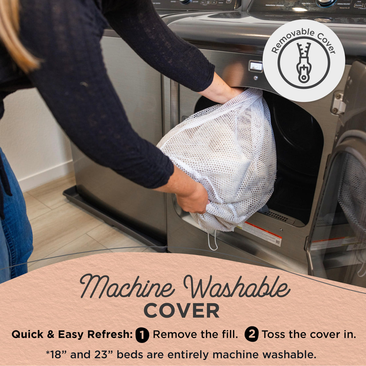 Q: How do I clean the Calming Donut Bed?A: Cleaning the Calming Donut Bed is simple. The small beds (18 in and 23 in) are entirely machine washable. For medium, large, and extra large beds (30 in, 36 in, 45 in, and 54 in), the removable cover can be machine washed. Always follow the care instructions on the label for best results.