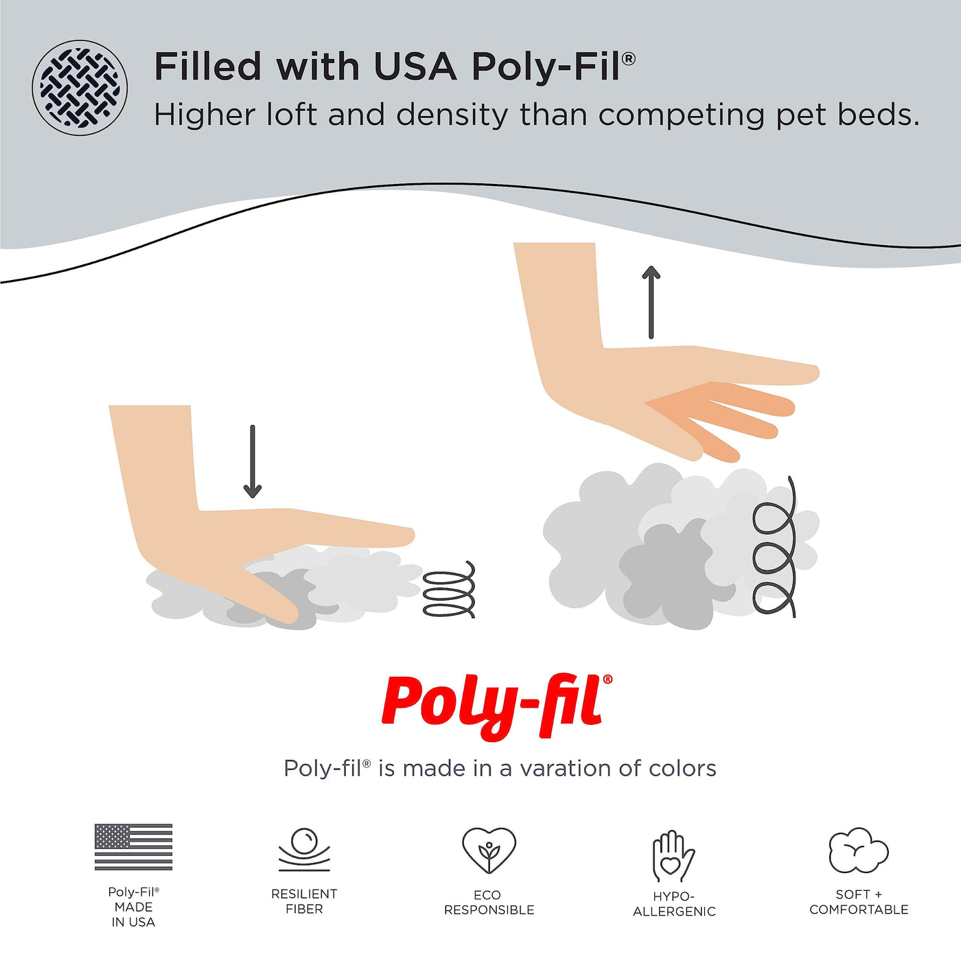 Give your pet more than just a dog bed! Best Friends by Sheri is the original creator of the most popular dog bed that has surfaced the internet in recent years: The Calming Donut Dog Bed. This innovative cuddler shag design provides better sleep, supports joints, and offers a calming, self-warming effect. The donut cuddler is carefully crafted and filled with CoziLOFT fibers, allowing your pet to be instantly enveloped in premium, soft, luxurious comfort. The poly filling in our calming dog bed keeps its loft for up to 3Xs longer than standard pet beds, meaning it provides longer comfort, support and aesthetic appeal. Encouraging a deeper nights rest or a refreshing daytime nap, our soothing dog bed is special because its been carefully designed to provide optimal neck, joint, and muscle support. For dogs and cats who like to burrow, the bed creates a perfect space for cuddles and top-notch snuggling. With a water and dirt-resistant bottom, our calming pet bed helps prevent messes from reaching your floors. When accidents happen, toss the shell or bed (small 23x23) into the washing machine for easy clean up. Follow the instructions on the label to ensure proper care.