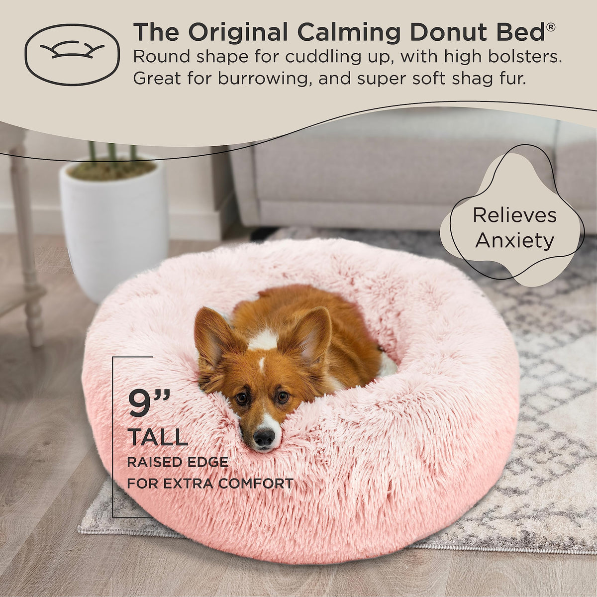 Give Your Pet More Than Just A Dog Bed! Best Friends By Sheri Is The Original Creator Of The Most Popular Dog Bed That Has Surfaced The Internet In Recent Years: The Calming Donut Dog Bed. This Innovative Cuddler Shag Design Provides Better Sleep, Supports Joints, And Offers A Calming, Self-Warming Effect. The Donut Cuddler Is Carefully Crafted And Filled With Coziloft Fibers, Allowing Your Pet To Be Instantly Enveloped In Premium, Soft, Luxurious Comfort. The Poly Filling In Our Calming Dog Bed Keeps Its Loft For Up To 3Xs Longer Than Standard Pet Beds, Meaning It Provides Longer Comfort, Support And Aesthetic Appeal. Encouraging A Deeper Nights Rest Or A Refreshing Daytime Nap, Our Soothing Dog Bed Is Special Because Its Been Carefully Designed To Provide Optimal Neck, Joint, And Muscle Support. For Dogs And Cats Who Like To Burrow, The Bed Creates A Perfect Space For Cuddles And Top-Notch Snuggling. With A Water And Dirt-Resistant Bottom, Our Calming Pet Bed Helps Prevent Messes From Reaching Your Floors. When Accidents Happen, Toss The Shell Or Bed (Small 23''X23'') Into The Washing Machine For Easy Clean Up. Follow The Instructions On The Label To Ensure Proper Care.