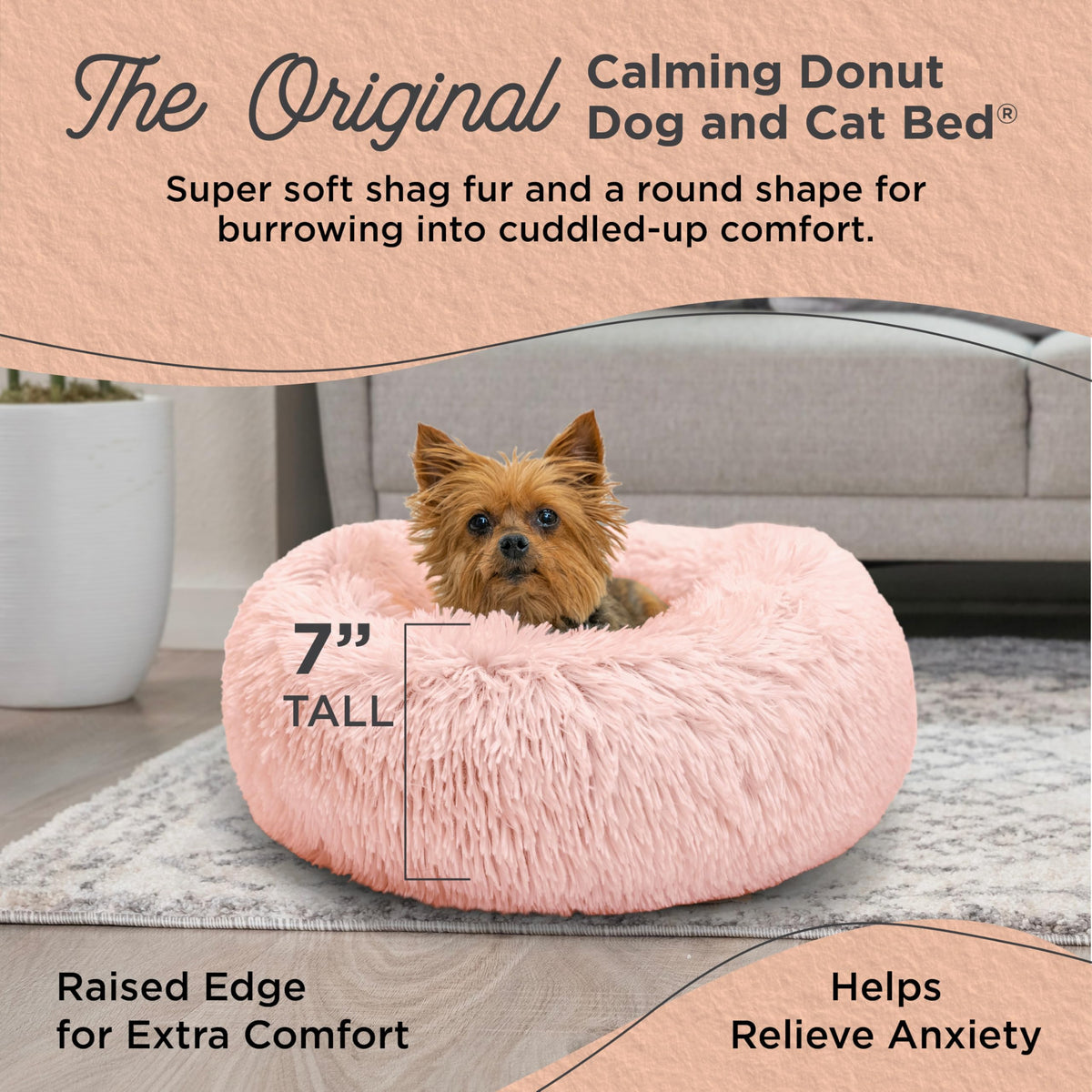 Give Your Pet More Than Just A Dog Bed! Best Friends By Sheri Is The Original Creator Of The Most Popular Dog Bed That Has Surfaced On The Internet In Recent Years: The Original Calming Donut Dog And Cat Bed. This Innovative Cuddler Design Provides Better Sleep, Supports Joints, And Offers A Calming, Self-Warming Effect With Luxuriously Soft Shag Fur. This Small Dog Bed Is Carefully Crafted With A Lofty, Supportive Filling, Allowing Your Pet To Feel Instantly Enveloped In Premium Comfort. The Polyfill In Our Calming Dog Bed Keeps Its Loft Up To 3Xs Longer Than Standard Pet Beds, Providing Longer Comfort And Support. Perfect For A Deeper Nights Rest Or A Refreshing Daytime Nap, Our Soothing Dog Bed Is Designed To Provide Optimal Neck, Joint, And Muscle Support. For Dogs And Cats Who Like To Burrow, The Bed Creates A Perfect Space For Cuddles And Top-Notch Snuggling, And The Tall Bolsters Help Create A Calming Sense Of Security. With A Water And Dirt-Resistant Bottom, Our Calming Pet Bed Helps Prevent Messes From Reaching Your Floors. When Accidents Happen, This Machine Washable Dog Bed Makes Cleaning A Breeze. Follow The Instructions On The Label To Ensure Proper Care.